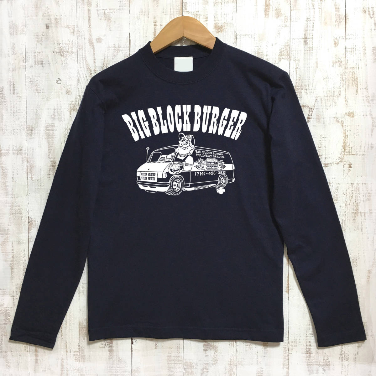 ■BIG BLOCK BURGER ロンT■XLサイズ(ネイビーxホワイト)ダッジ ダッジバン ラムバン DODGE RAM MOPAR