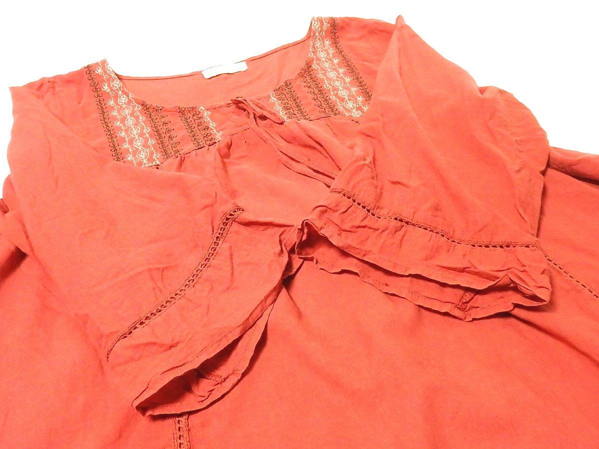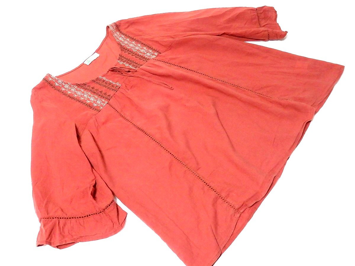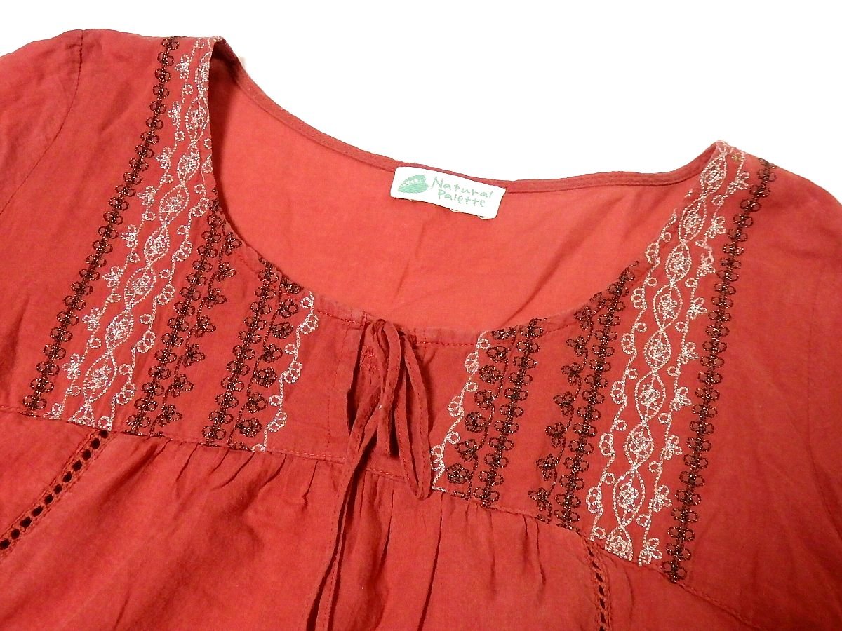 【Natural paletteナチュラルパレット】朱色系・七分袖・刺繍付き・オープンカットソー・Lサイズ!