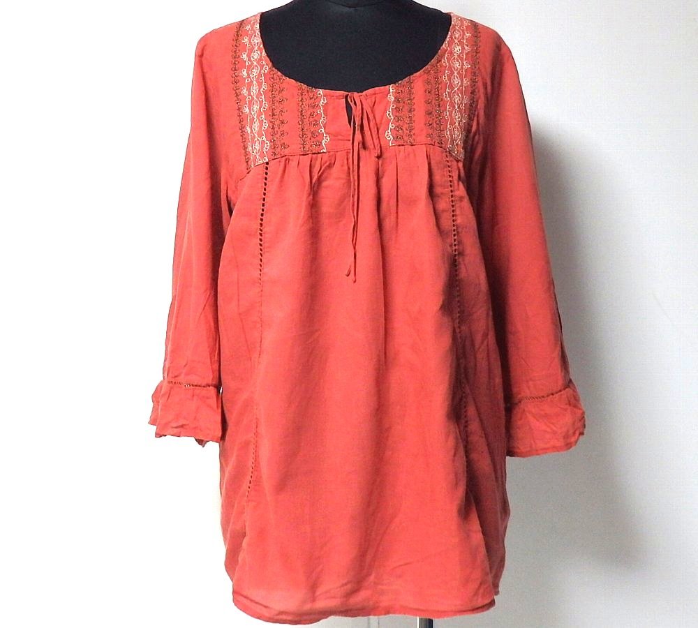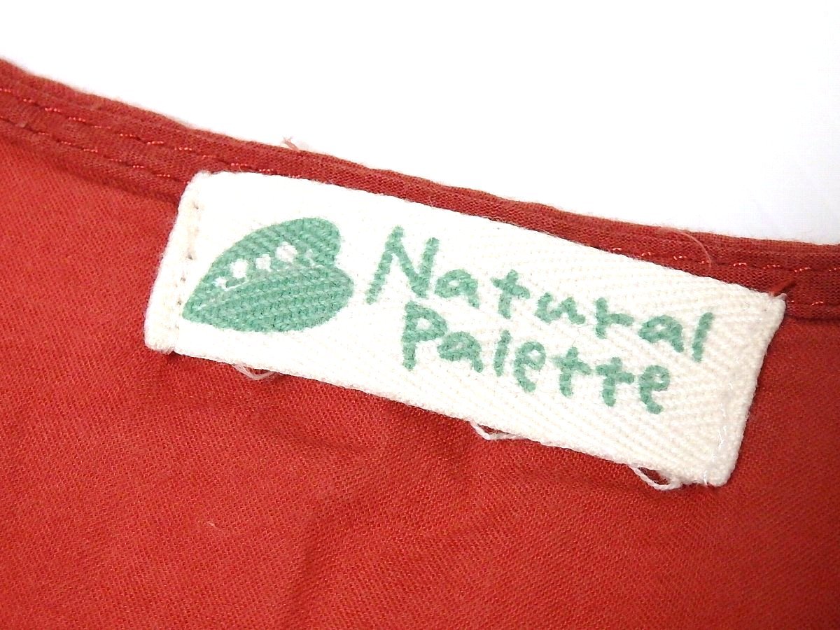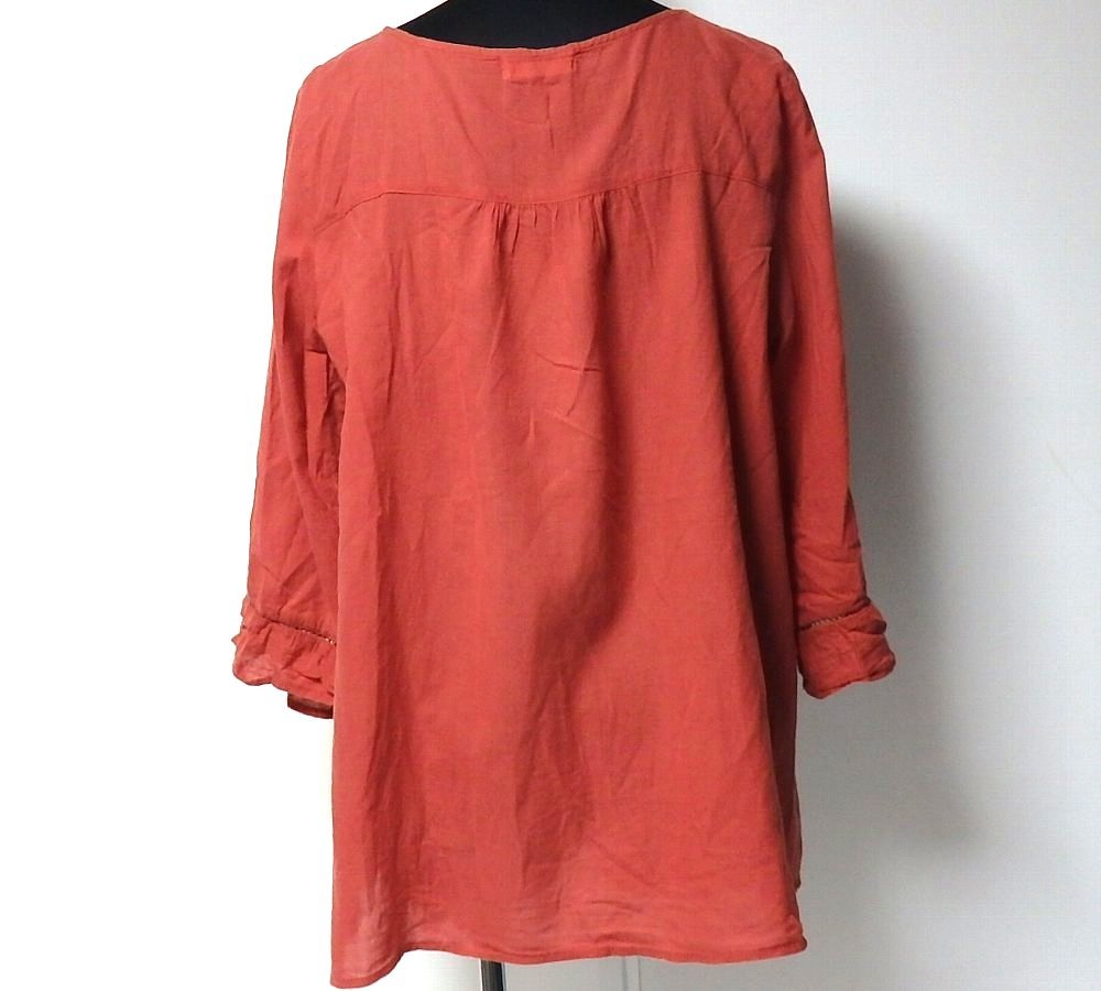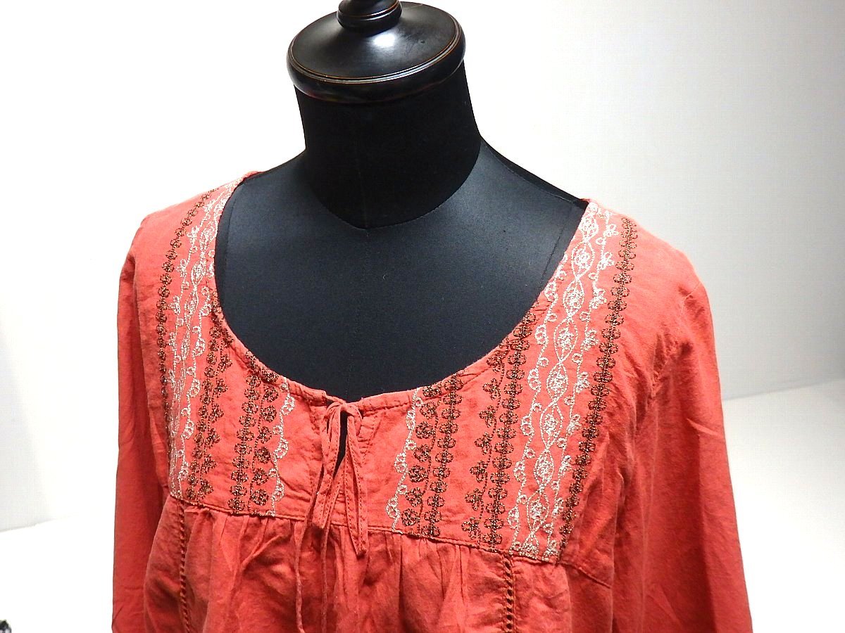 【Natural paletteナチュラルパレット】朱色系・七分袖・刺繍付き・オープンカットソー・Lサイズ!