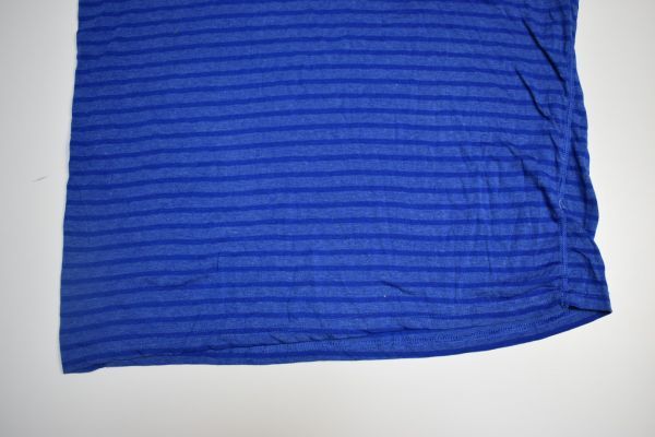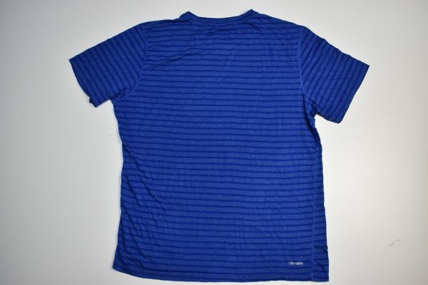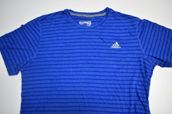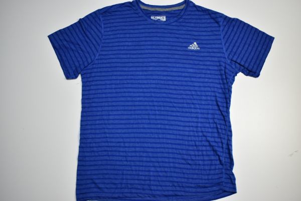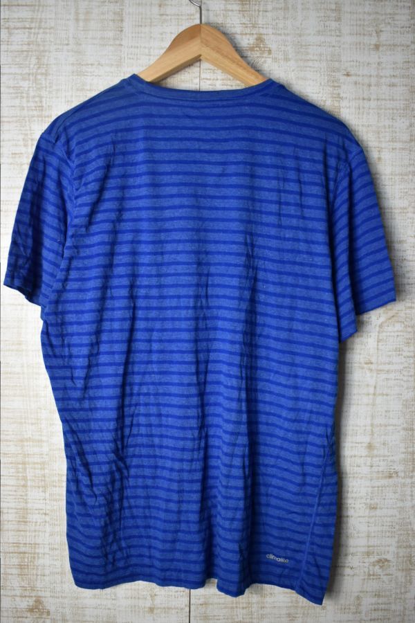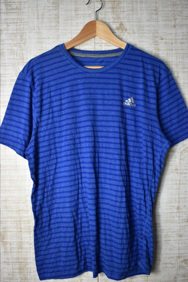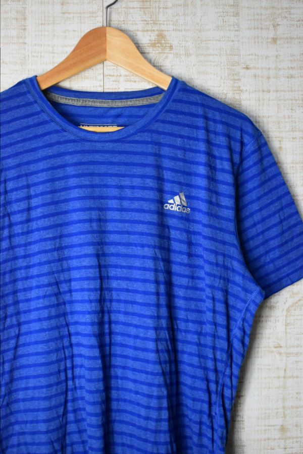 ●US USED adidas アディダス ボーダー Tシャツ ロゴプリント DRY 速乾 スポーツTEE ブルー青【L】
