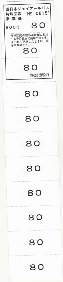 【西日本JRバス】特殊回数券 800円 11券片あり