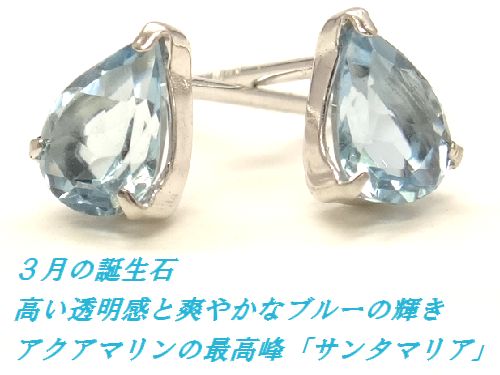 K10 サンタマリア アクアマリン ペアシェイプ ピアス 4x6 WG YG 選べるゴールド ジュエリー 高品質 サンタアクア 3月誕生石 天然石 箱付き