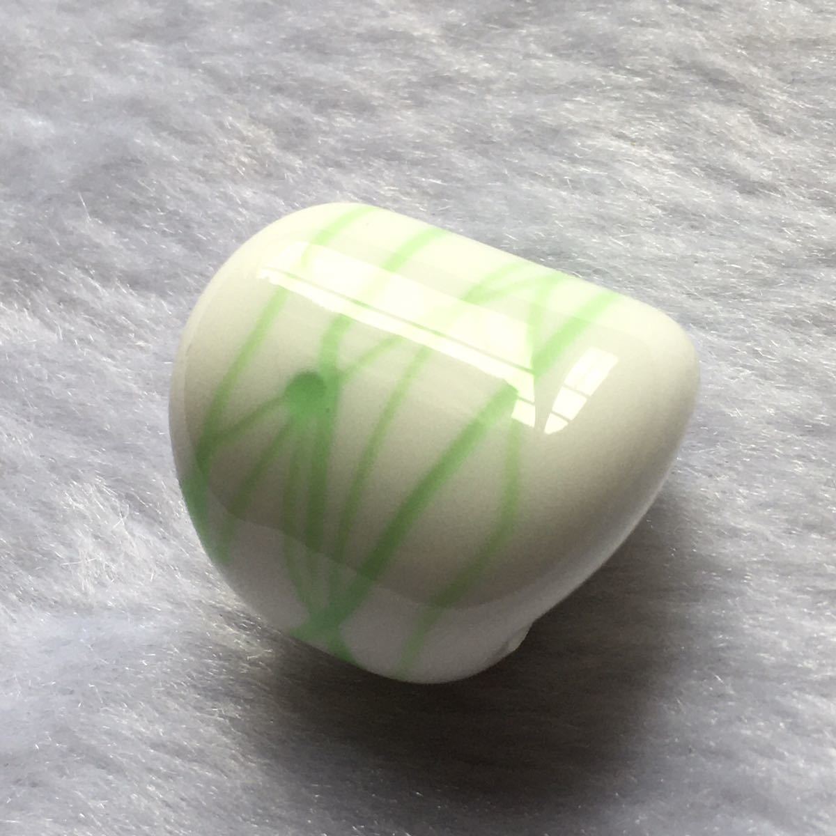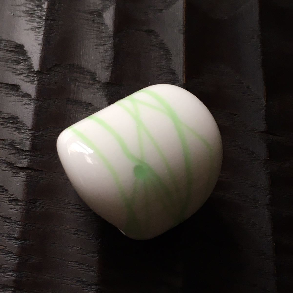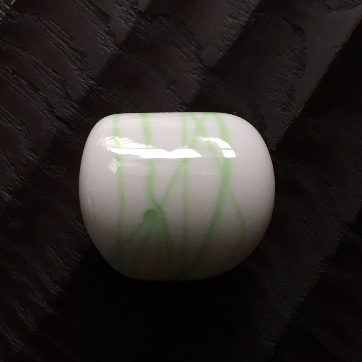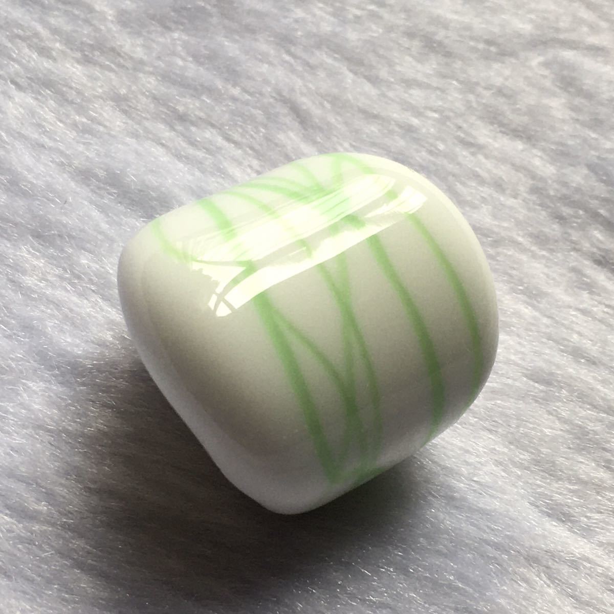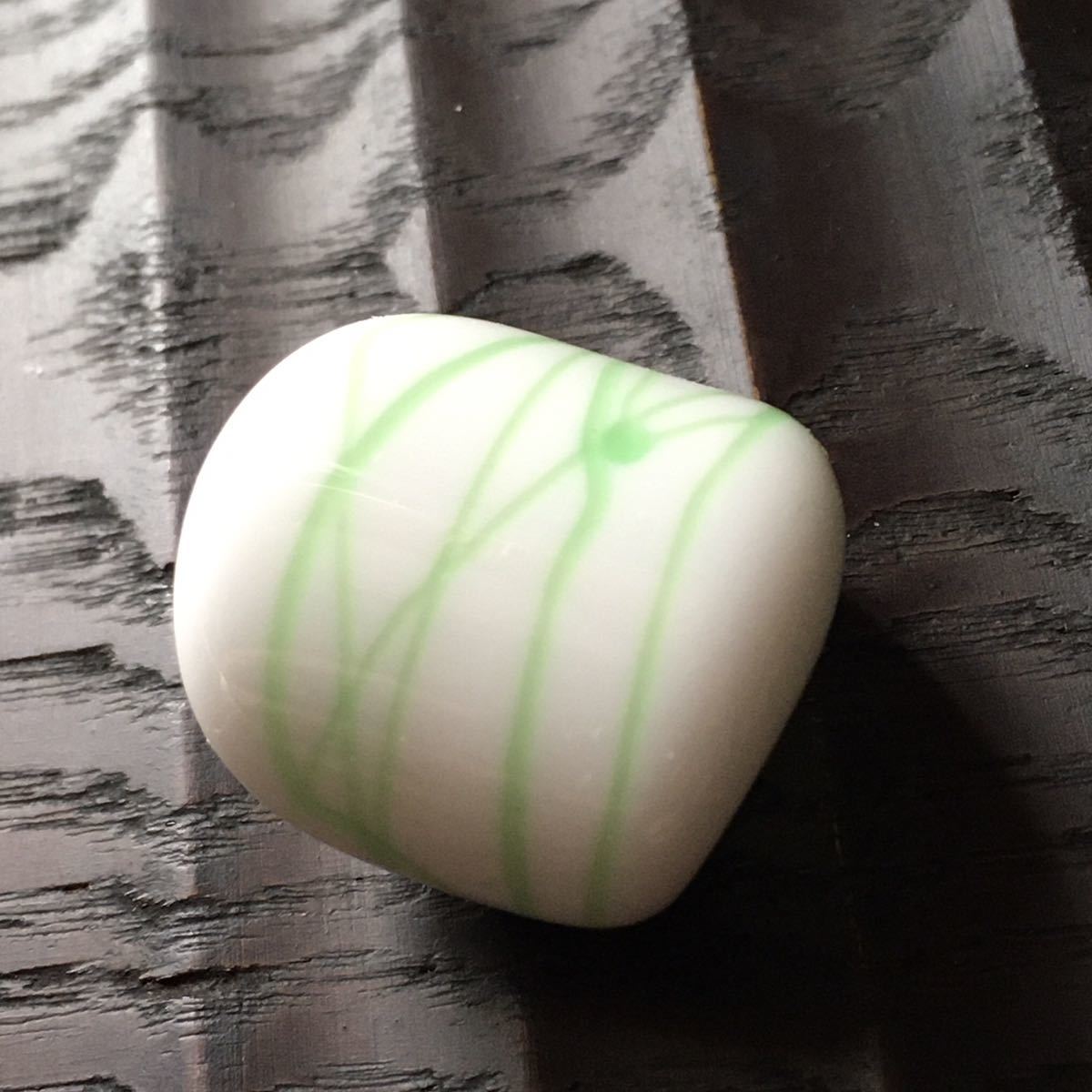 白いガラスの表面に黄緑色のガラスの細引き模様を乗せてみました。