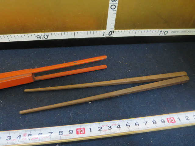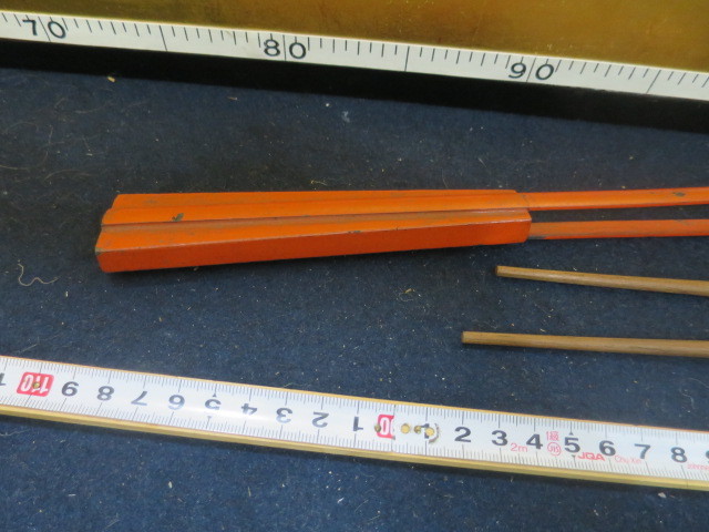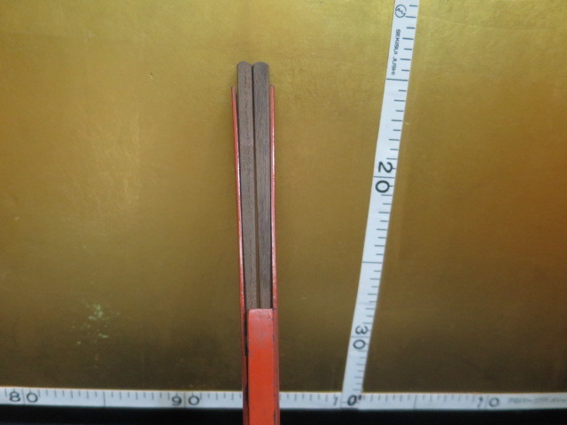 「時代の有る扇子E-171-96」 マニアより出ました。 明治~大正時代 扇子箸入れ 全体サイズ25cm箸長さ22cm 新品では在りません。時代の有るお品ですのでご理解のある方の 入札を望みます。 |