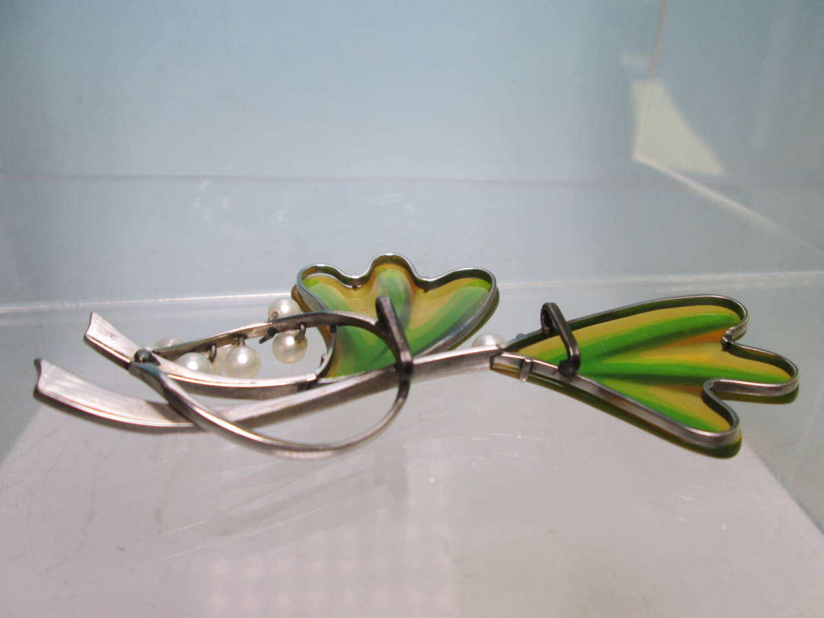 本べっ甲に彩色された美しいデザインの大振りな帯留めです。
