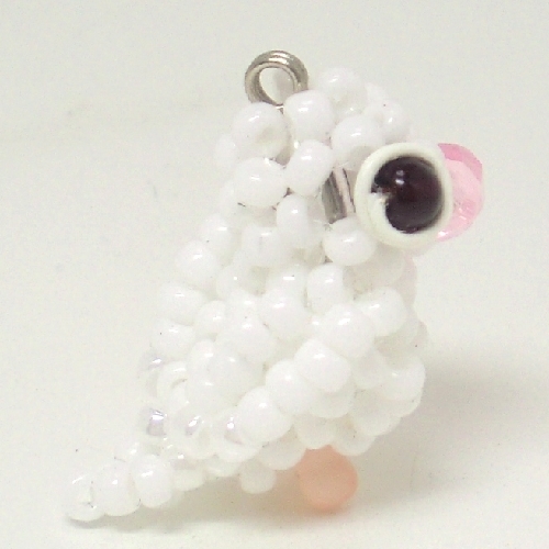 ボタンインコ アルビノ ビーズの小鳥★3WAY(ストラップ・イヤホンジャック・ファスナーチャーム)工房小鳥屋さん インコストラップ