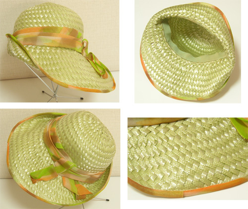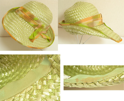 ヴィンテージ Lazarus レディース ハットです。状態は、古い物ですので、擦れや内側のスベリに汚れと、経年による色あせがありますが(画像4下)、ビンテージの雰囲気ある物です。アメリカで購入しました。デザインや作りがとても可愛いです。古い物ですので、状態はそれなりですが、年代物の風格とレトロ感ある珍しい物です。高さ14.5cm程、つばの最大幅11.5cm程、内周り54cm程です。ビンテージ物とご理解頂いて、ノークレーム、ノーリターンでお願いします。