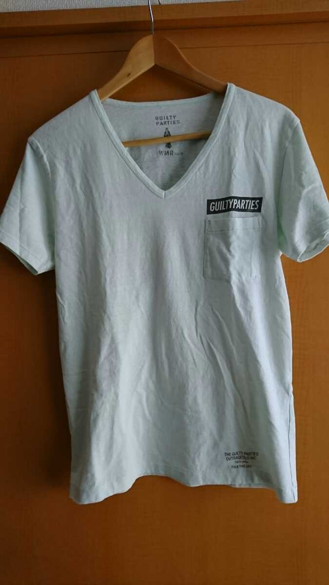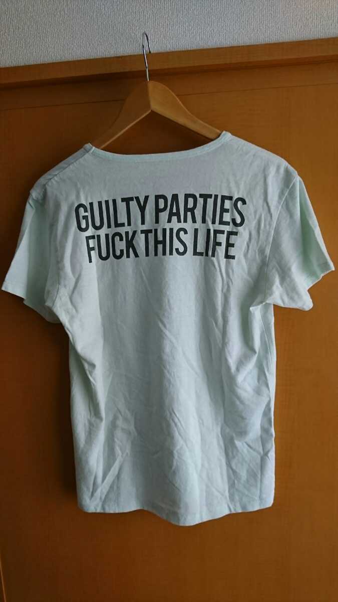 胸ポケット上と左裾、背面、首元内側にステンシルロゴプリントが入っています。