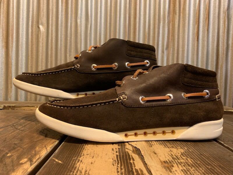 I386 メンズ シューズ デッキシューズタイプ♪ SKIVE スカイブ ブラウン レザー 本革 デッキ ミッドカット スエード (8)/ 28.0cm