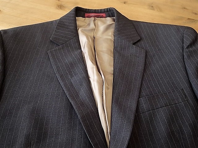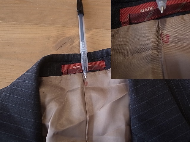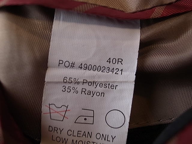 ◆ブランド… 「IZOD」 アメリカ古着 ●サイズ表記 40R 日本サイズの L相当 肩幅…48cm(肩先から肩先の間の長さ) 身幅…56cm(両脇を横直線に結んだ長さ) 着丈…78cm(後衿ぐり中央から後身頃裾) 袖丈…61cm(袖付けの肩先から袖先) ※平置き状態での素人採寸ですので、多少の誤差はご了承ください。 ●素材表記…65%ポリエステル 35%レーヨン オールシーズン対応 ●色… グレー ストライプ柄 ●裏地… 総裏仕立て ●ベント… センターベント ●ポケット…フラップポケット ●製造国表記… CHINA ●状態…裏地の襟近くにマジックのマーキングがあります。ご確認ください。その他全体的には使用感は少ない美品です。 ★送料 全国一律 700円 佐川急便 (北海道900円 沖縄その他離島1700円) ※複数ご購入の場合、同梱発送可能です。 |