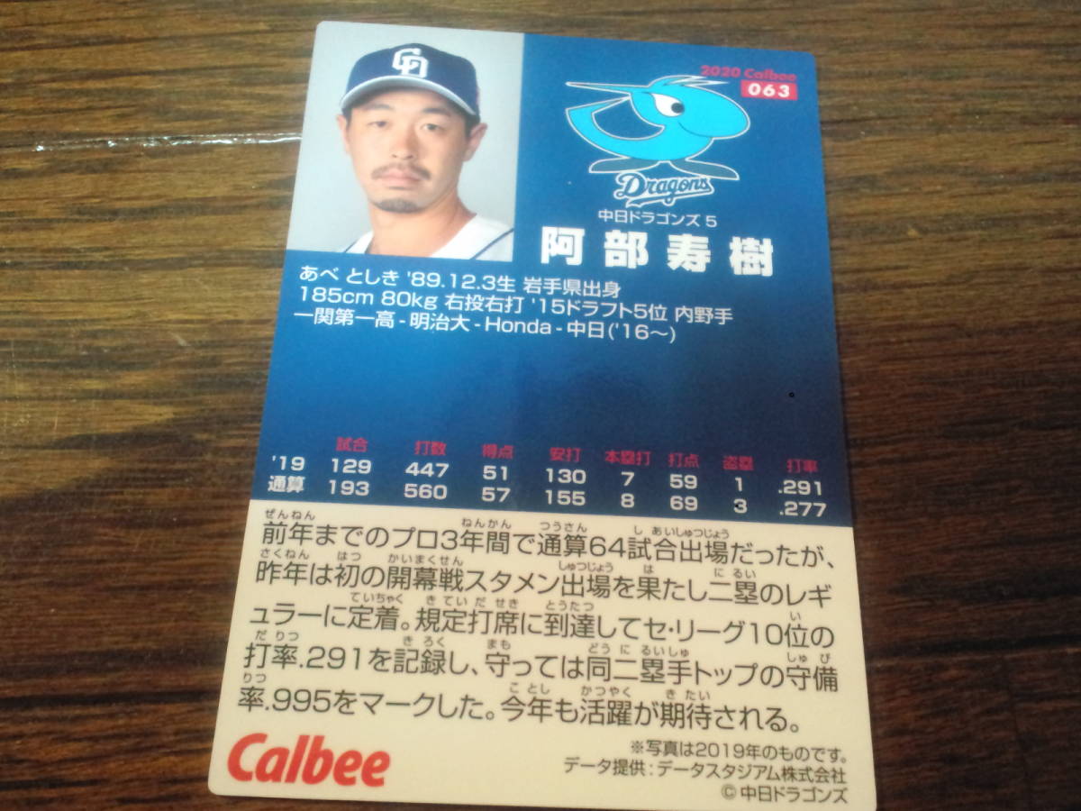 [同梱可]★阿部寿樹(中日ドラゴンズ)★レギュラーカード(063)☆2020年カルビープロ野球カード第1弾