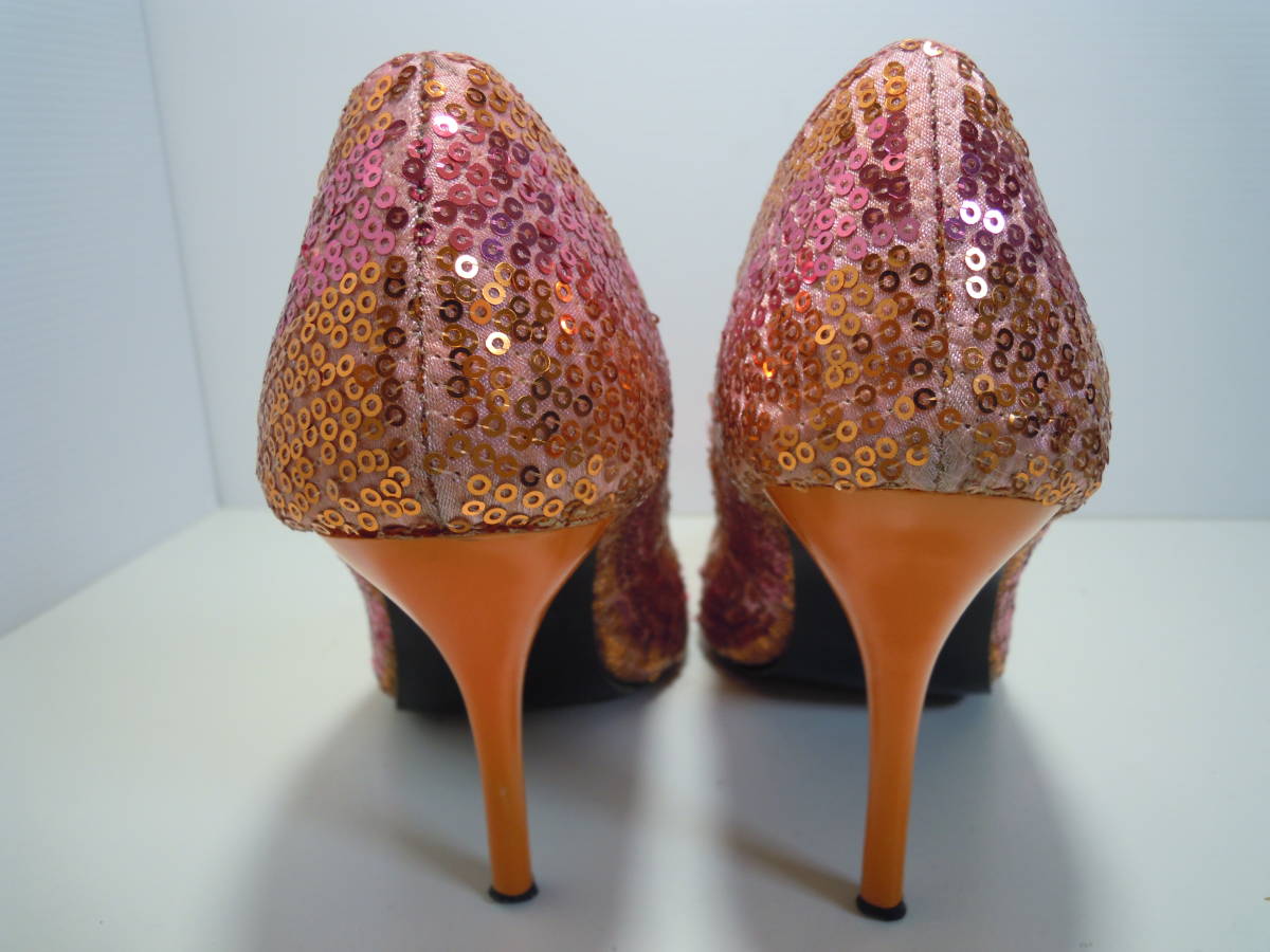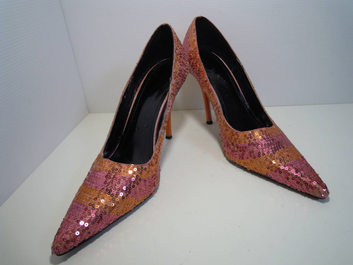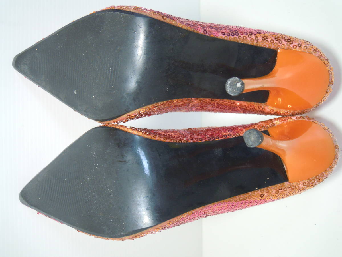 【ブランド・形態】 キラキラスパンコール ポインテッドトゥパンプス サイズ23.0cmです。 【カラー】 ピンク系/オレンジです。 掲載の実物写真はPC環境や光の加減により実物と色合いが若干異なる場合があります。 【特徴】 ポインテッドトゥは足先をシャープできれいに見せます☆ 女性らしく美しい足には高いピンヒールが欠かせません。 セクシーに足首細見せレディ感溢れるパンプス。 ヒール高さ:約10.0cm、最大幅:約8.0cm 【状態】 多少の使用感はあると思いますが、まだまだ使用して頂けると思います。 保存箱はありません。 【素材】 アッパー:スパンコール/合成皮革 アウトソール:合成底 【サイズ】 23.0cm、 質量:410g | |||