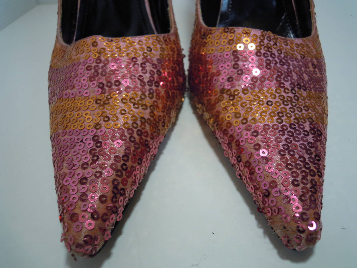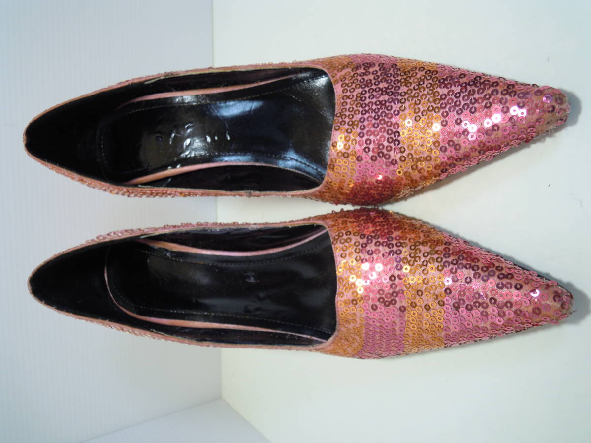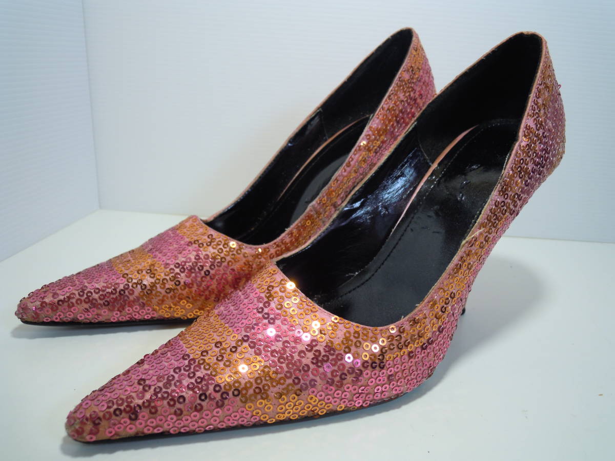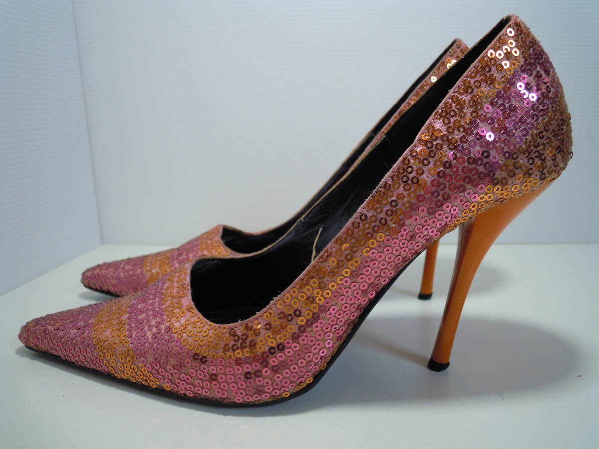 【ブランド・形態】 キラキラスパンコール ポインテッドトゥパンプス サイズ23.0cmです。 【カラー】 ピンク系/オレンジです。 掲載の実物写真はPC環境や光の加減により実物と色合いが若干異なる場合があります。 【特徴】 ポインテッドトゥは足先をシャープできれいに見せます☆ 女性らしく美しい足には高いピンヒールが欠かせません。 セクシーに足首細見せレディ感溢れるパンプス。 ヒール高さ:約10.0cm、最大幅:約8.0cm 【状態】 多少の使用感はあると思いますが、まだまだ使用して頂けると思います。 保存箱はありません。 【素材】 アッパー:スパンコール/合成皮革 アウトソール:合成底 【サイズ】 23.0cm、 質量:410g | |||