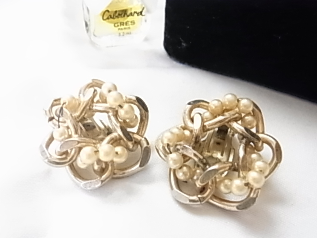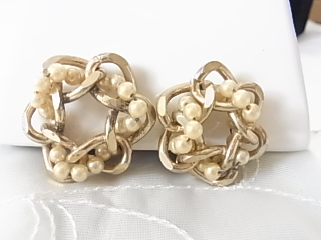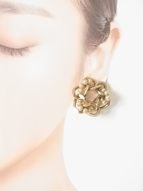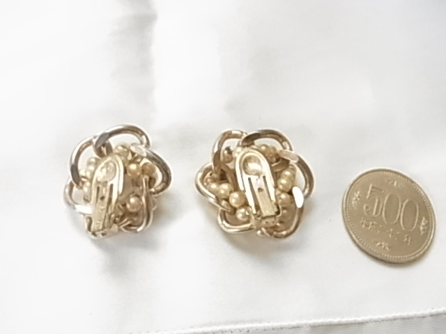 パール調ビジューストーンビーズ お花デザイン フラワーモチーフ 金色 イヤリング◆