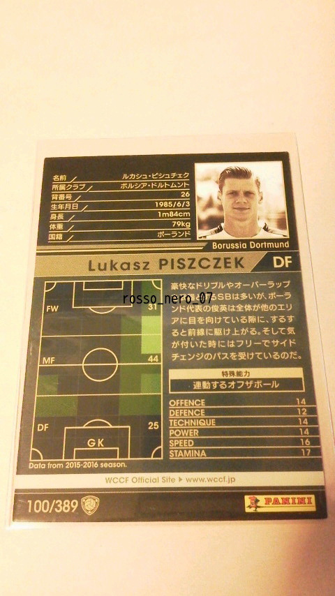 ☆WCCF2016-2017☆16-17☆100☆黒☆ルカシュ・ピシュチェク☆ボルシア・ドルトムント☆Lukasz Piszczek☆Borussia Dortmund☆