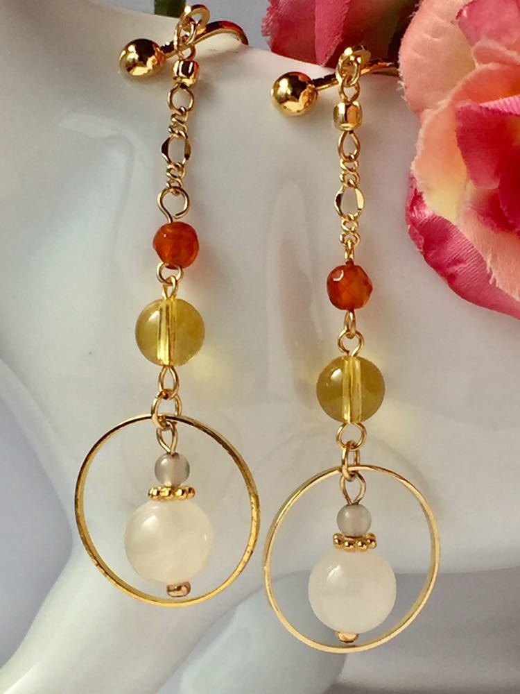 | 天然石はちみつ色のリングイヤリング(シトリン・カーネリアン・ホワイトアゲート) | |||