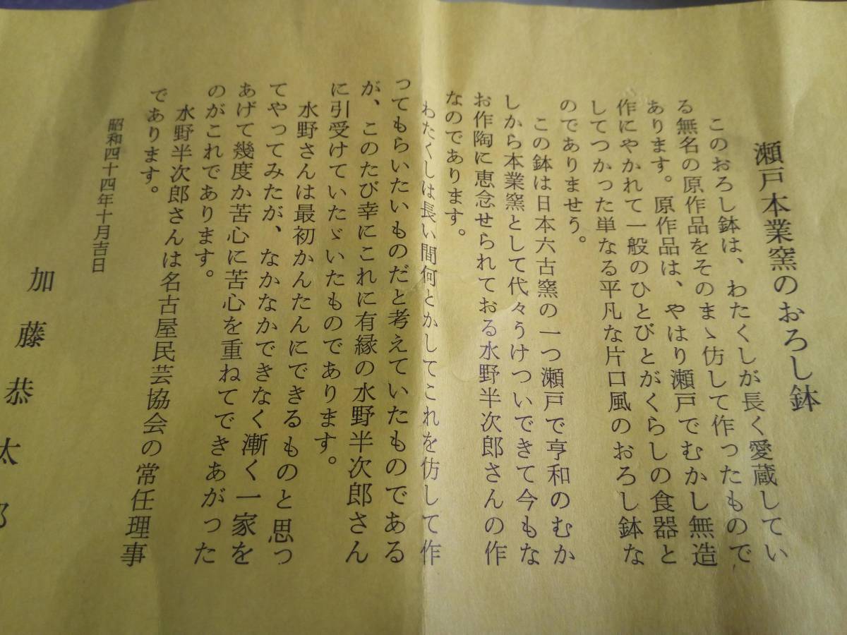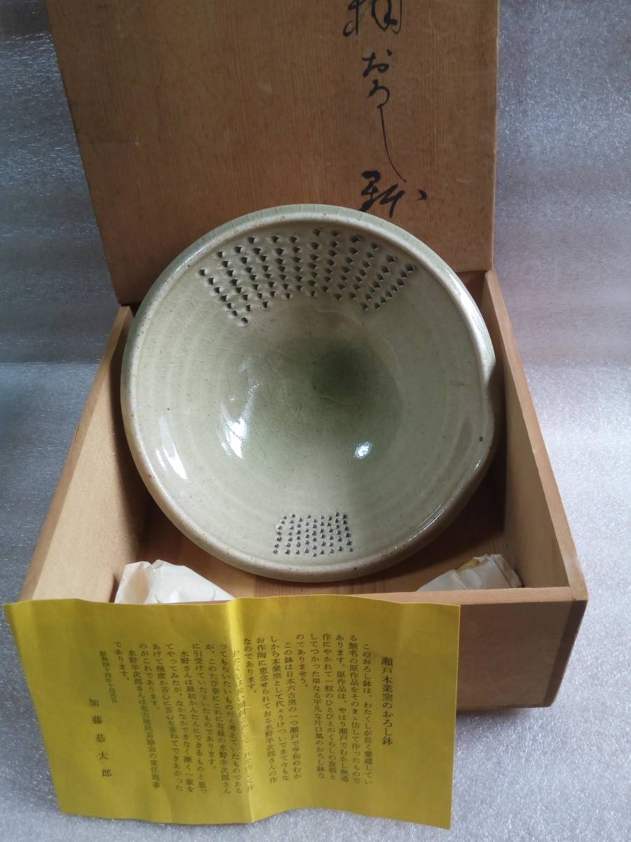 瀬戸本業窯 水野半次郎 珍しい おろし鉢 未使用品 共箱