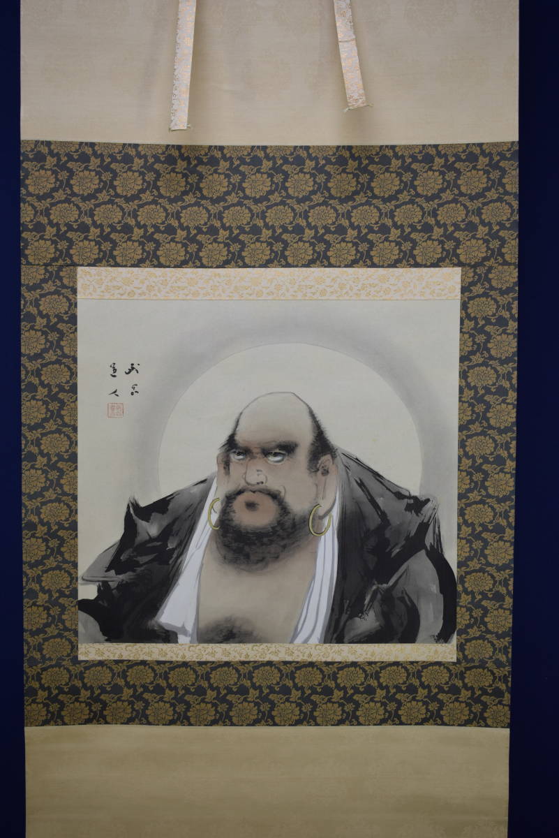 【真作】//長谷川武岳/達磨画賛/桐共箱付/布袋屋掛軸HH-440