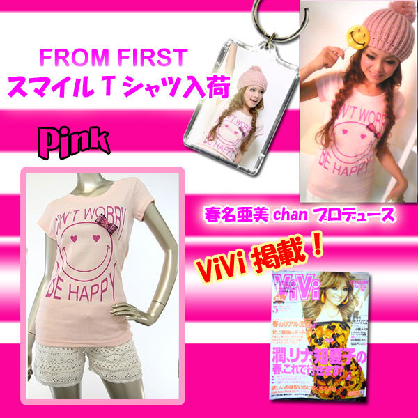 ViVi ヴィヴィ 春名亜美ちゃん プロデュース FROMFIRST Musee スマイル ニコちゃん Tシャツ ピンク |