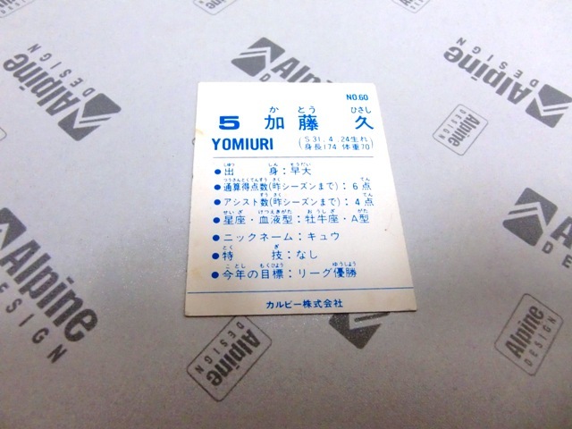 〇カルビーJリーグ 加藤久 YOMIURI NO.60