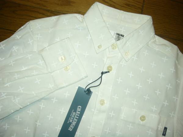 新品 CHALLENGER チャレンジャー クロス+ ドット柄 シャツ 白 S 長袖シャツ