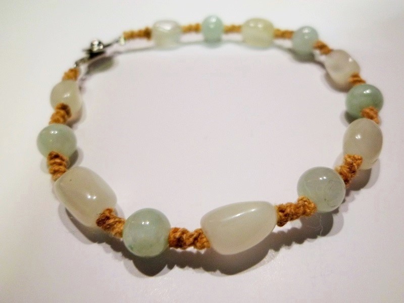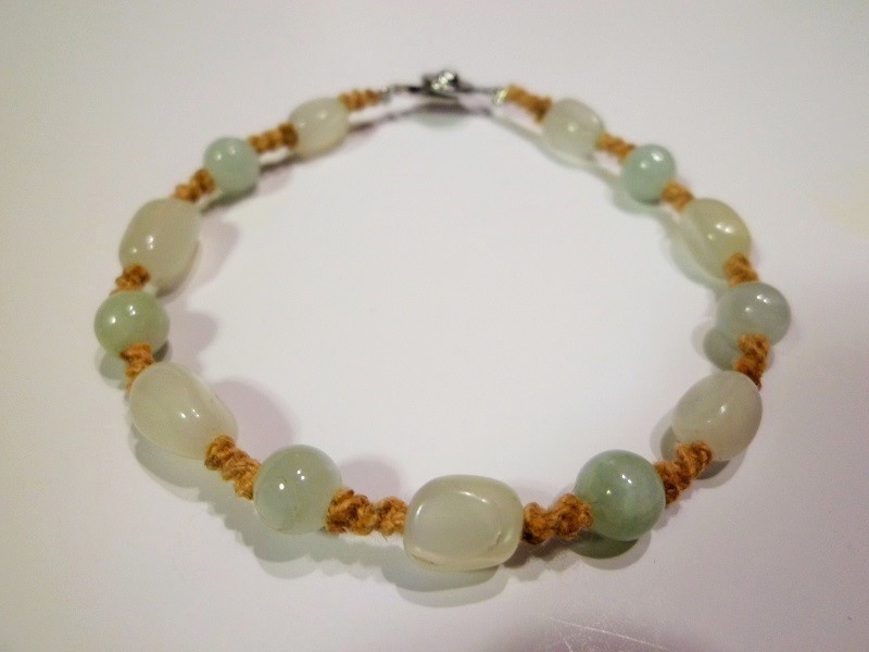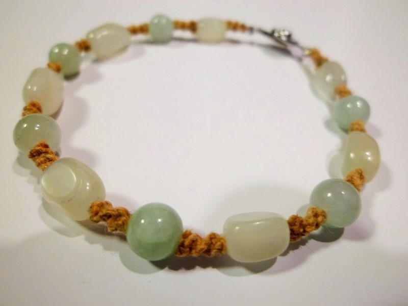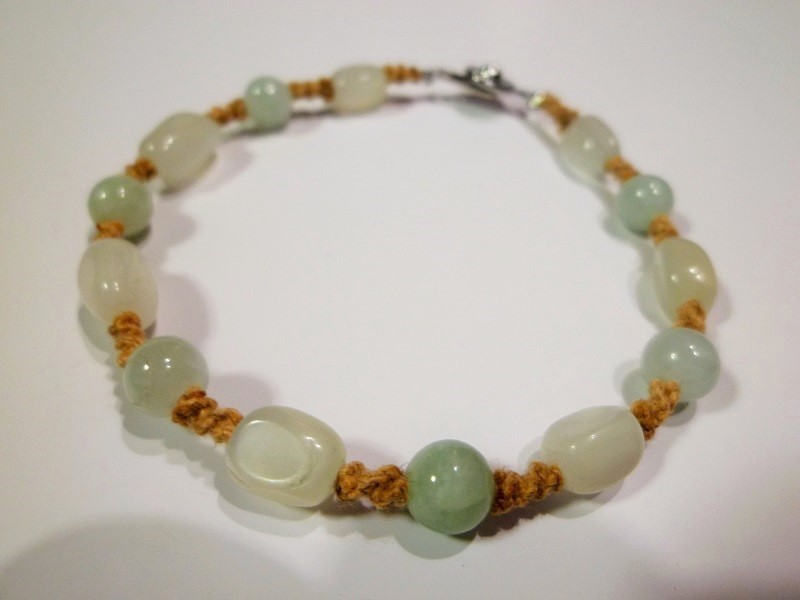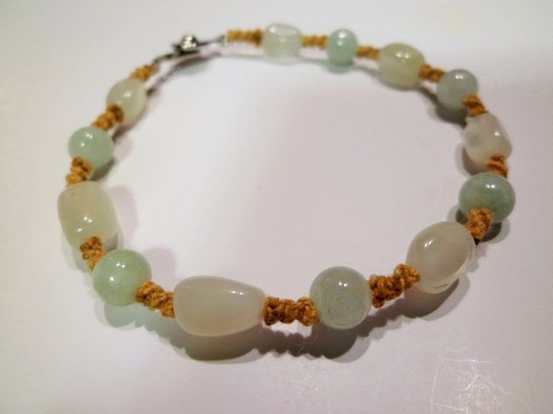 ムーンストーンタンブル 本翡翠 マクラメ ブレスレット