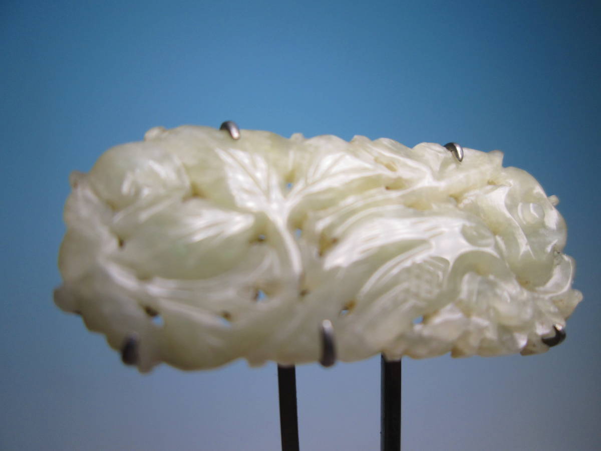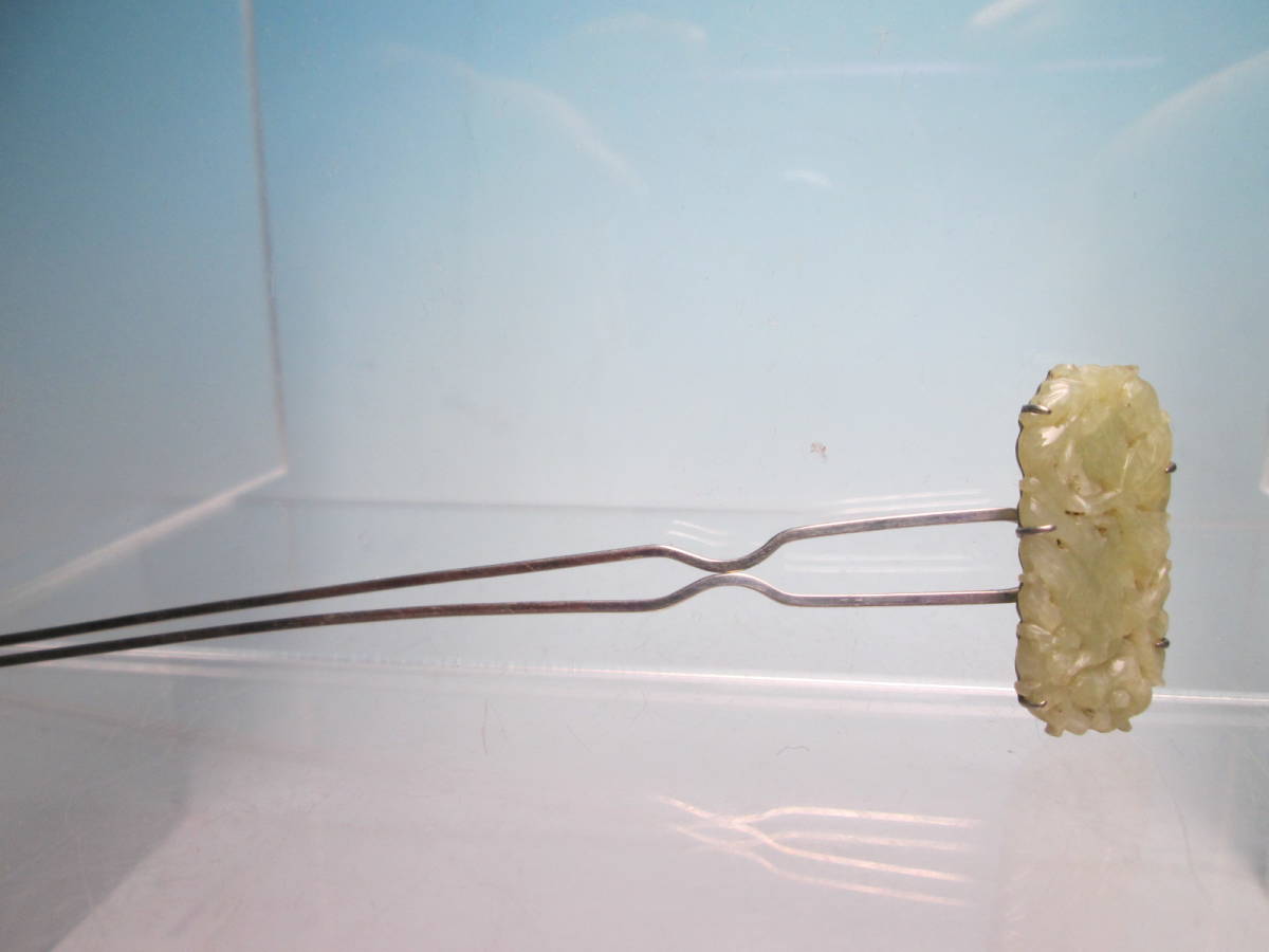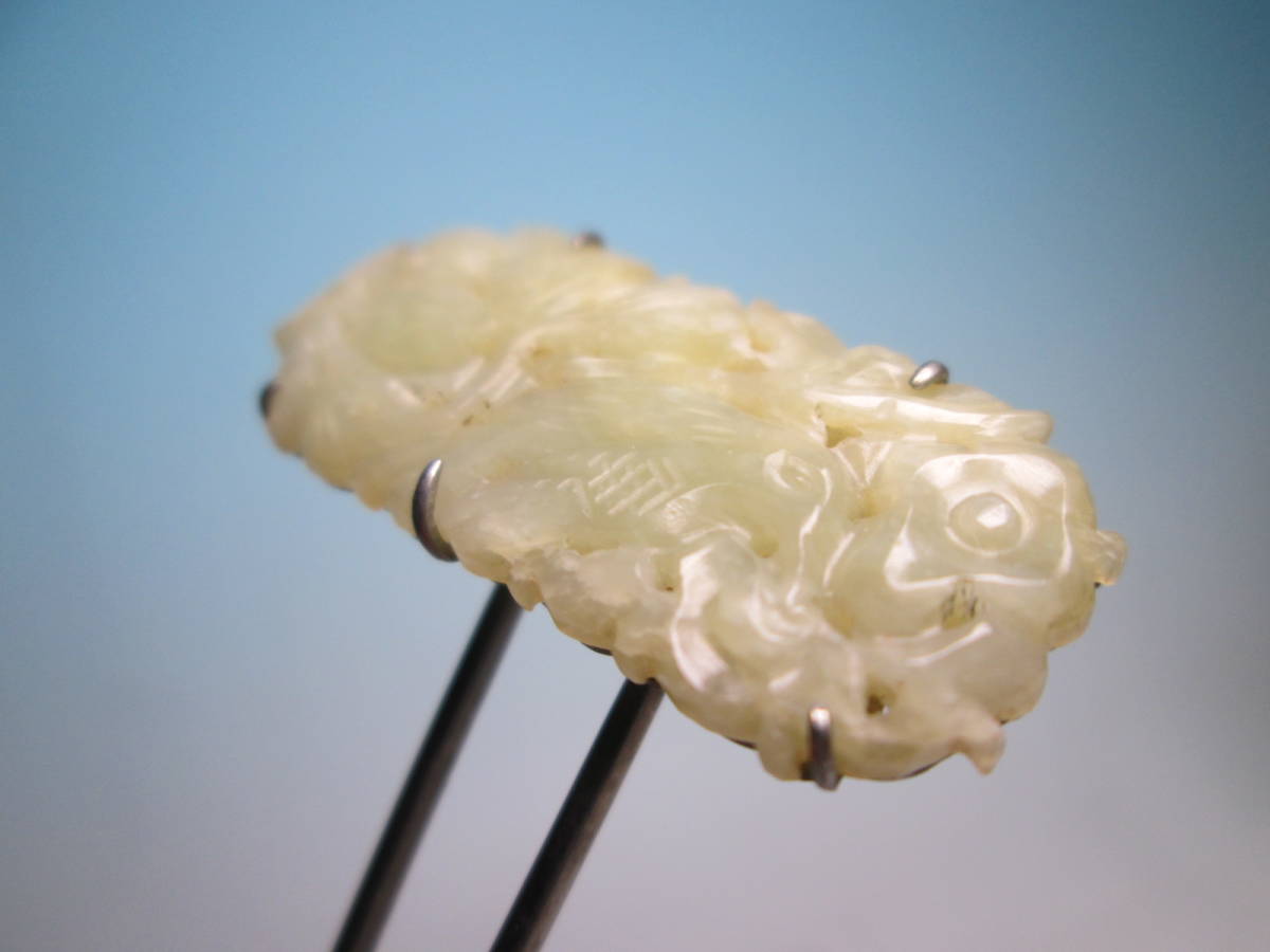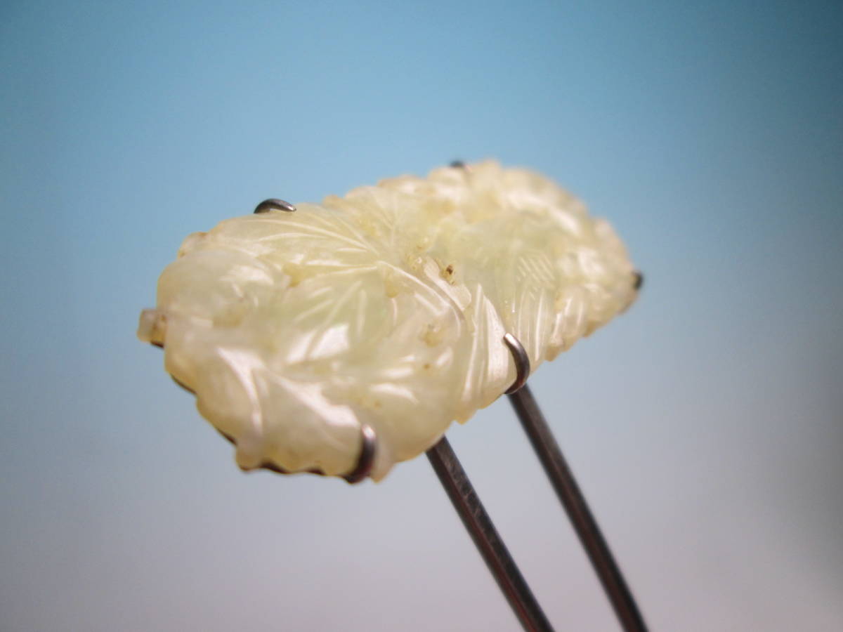 【江月】☆アンティーク・白砡 花に鳥透かし彫り彫刻のかんざし 5,8g