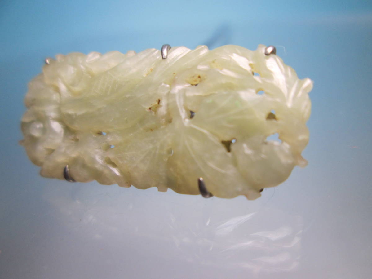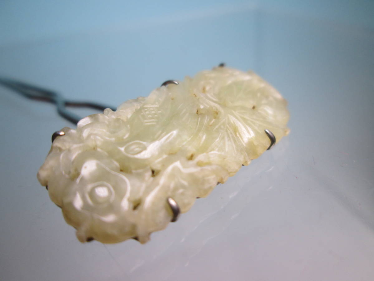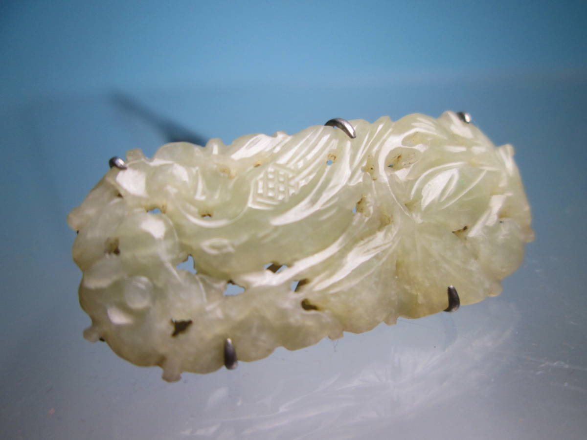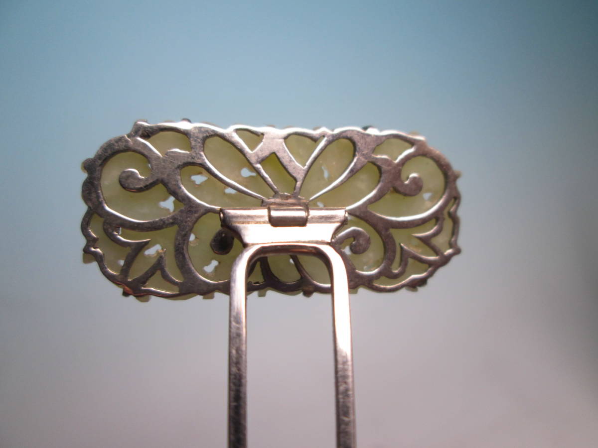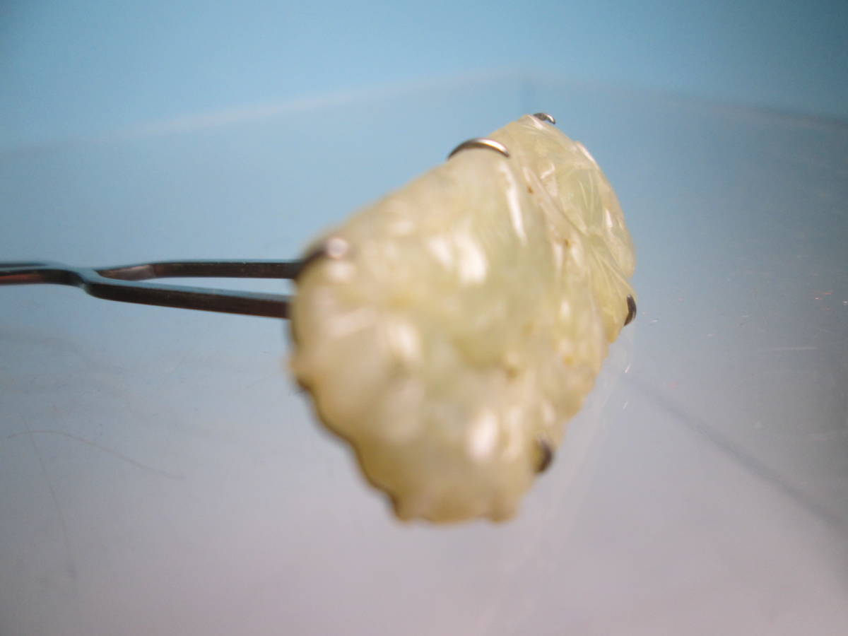 【江月】☆アンティーク・白砡 花に鳥透かし彫り彫刻のかんざし 5,8g