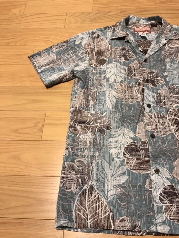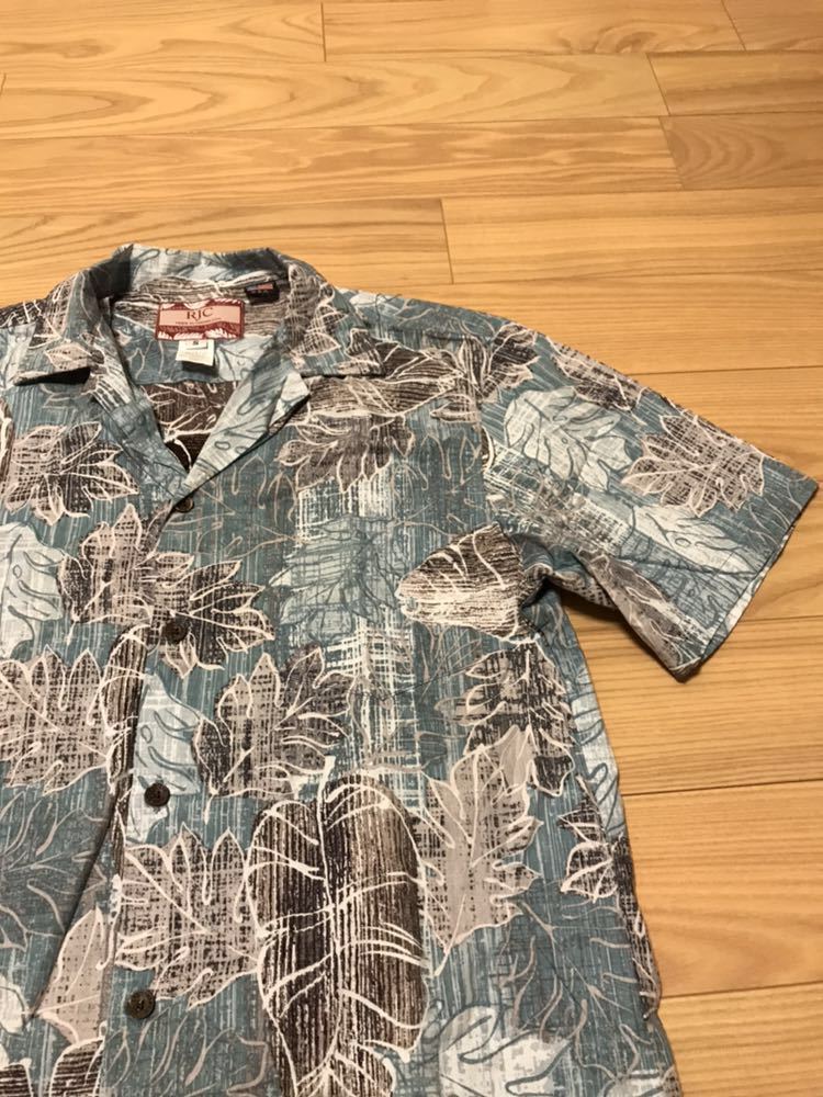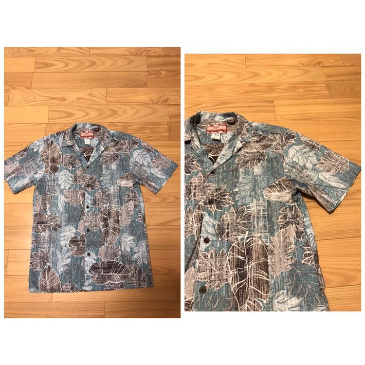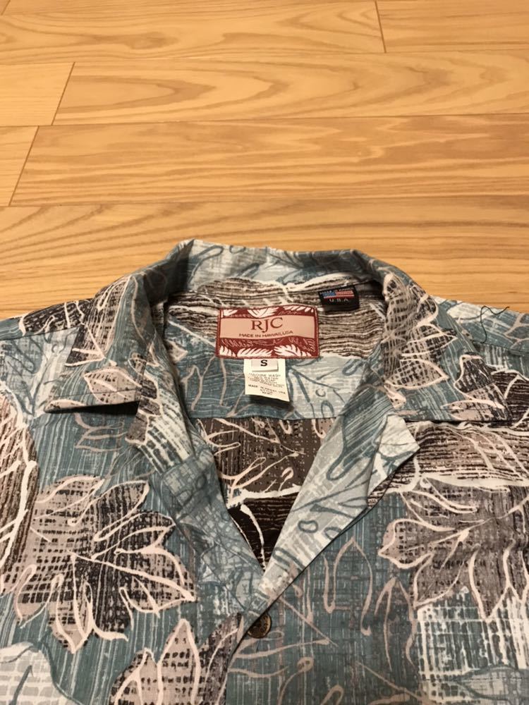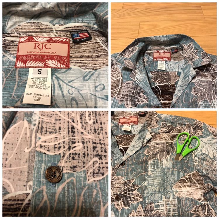 極美品 HAWAII/USA製☆RJC/アールジェイシー サイズS 半袖 裏使い生地.リバース大判プリント アロハシャツ 総柄 ボタニカル.葉っぱ柄