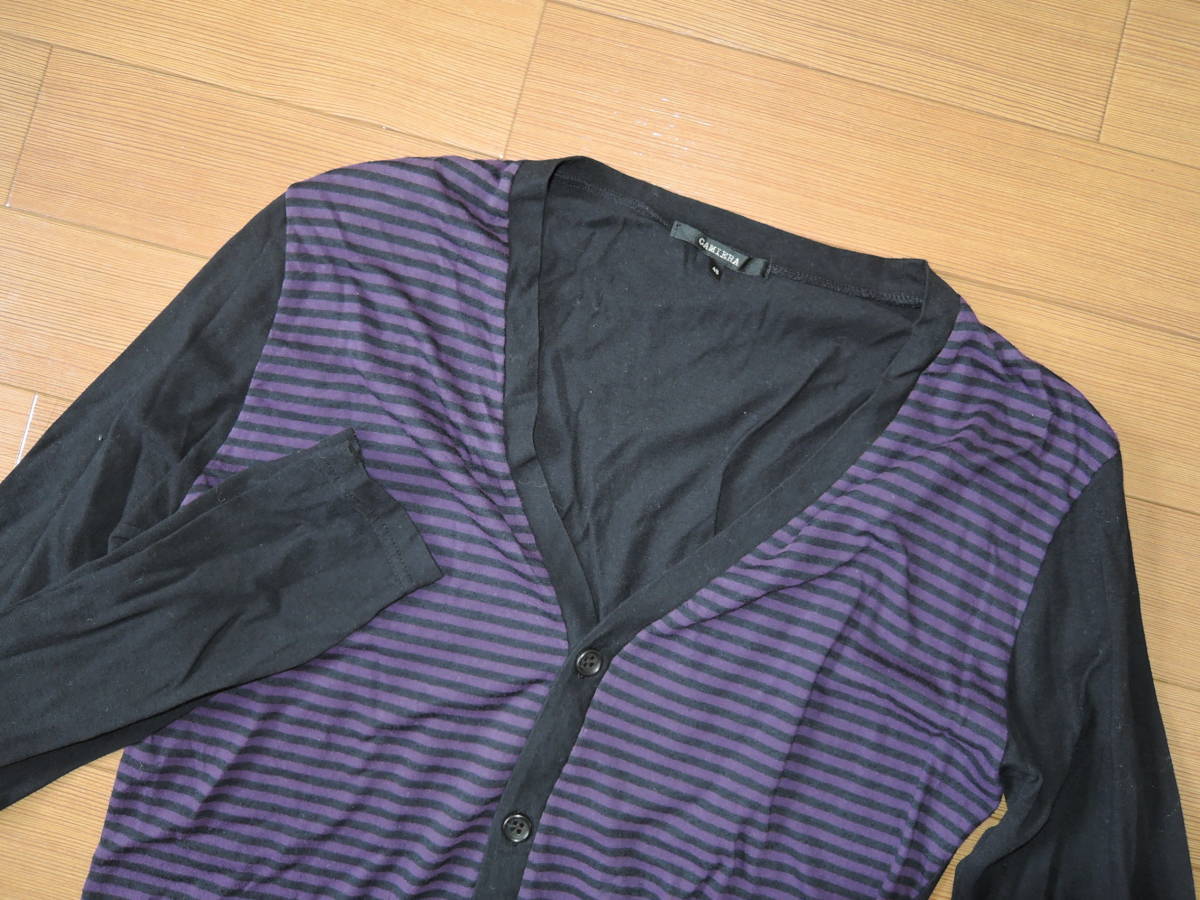 カミエラ CAMIERA カーディガン カットソー 48 黒紫 ボーダー ロンTシャツ