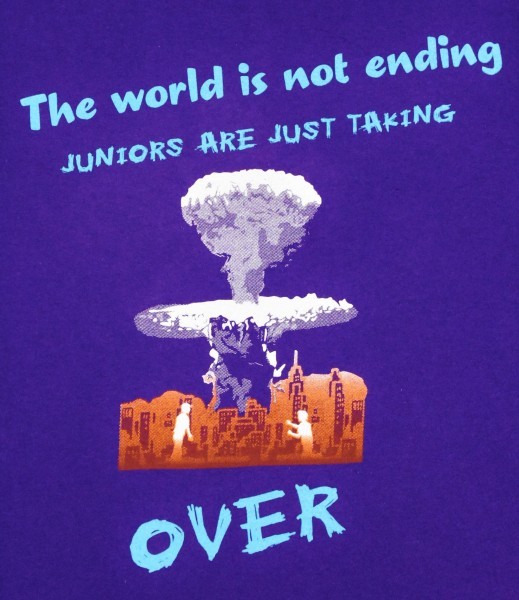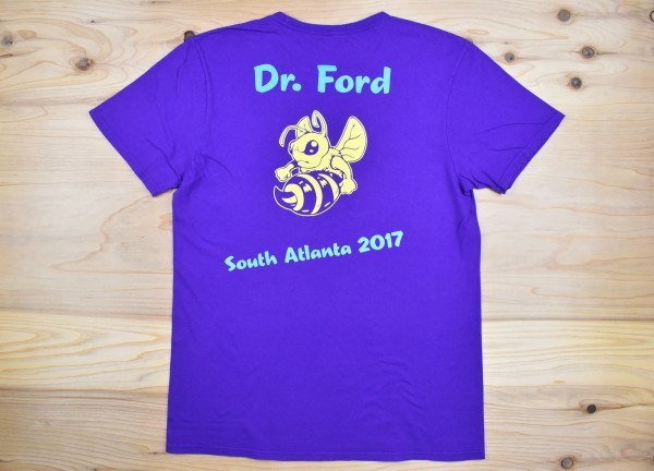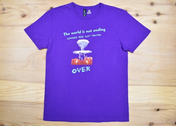 正面にキノコ雲、背面に蜂のキャラクターがプリントされた一枚です。