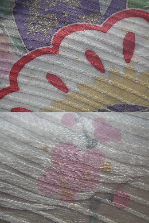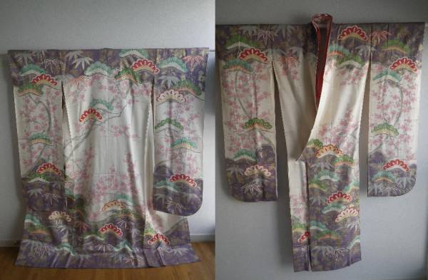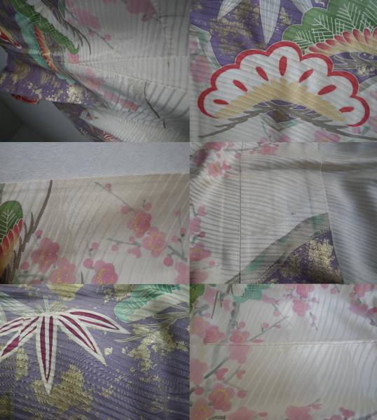 30年程前、上野松坂屋で約300万円で購入した振袖です。成人式用に購入した物ですので冬用になります。 白地に金をはじめ華やかな柄がとても個性的です。着用するたびにクリーニングし、大事に保管してきましたが着用する機会が無いためご希望の方にお譲りいたします。クリーニングして保管していましたが、数カ所細かいしみが出てまいりました(写真参照)。 それ以外の痛み、破れ等はございません。身長165㎝の者様に仕立てました。サイズは襟下から裾までは163㎝、袖はしから袖はしまで(横)133㎝です。白地や柄があまりないものですので人とは違った装いをお好みの方に最適です。あくまで中古ですのでその点ご了解いただける方のみご入札ください。 素材はもちろん絹になります。上質な生地&縫製ですので普通にもお召しいただけますが、見栄えのする個性的なデザインですので、舞台衣装にも映えるお品です。