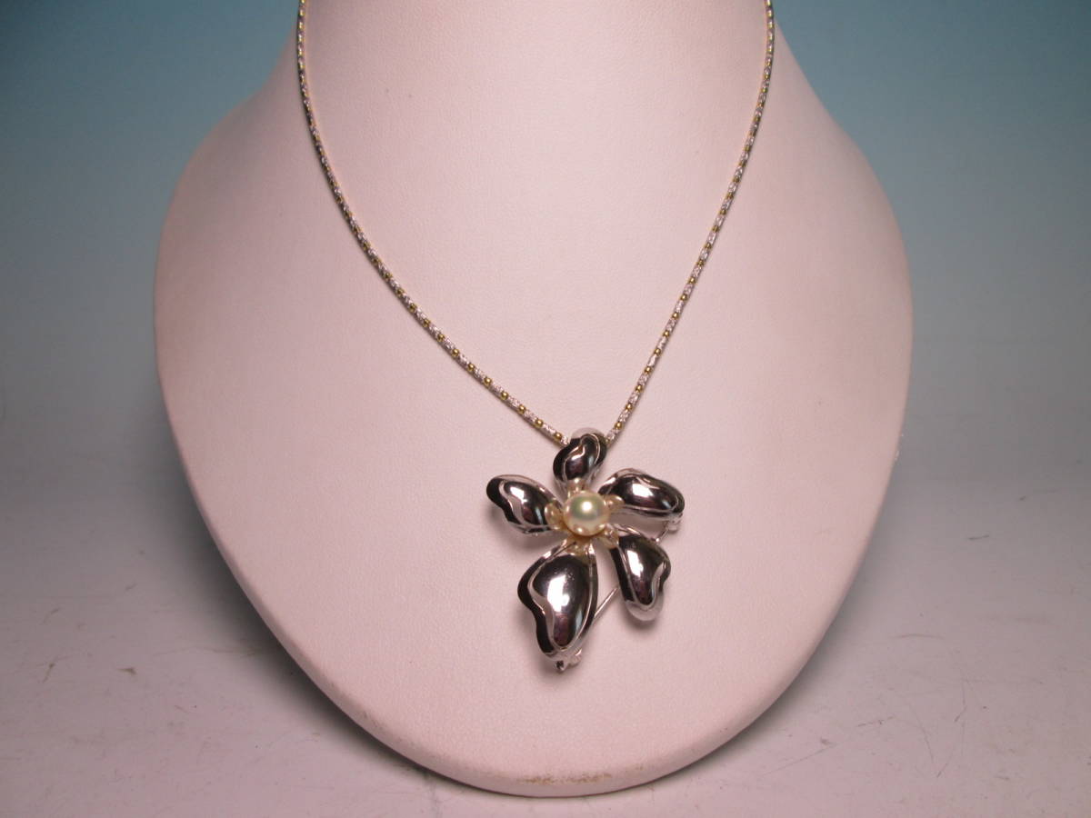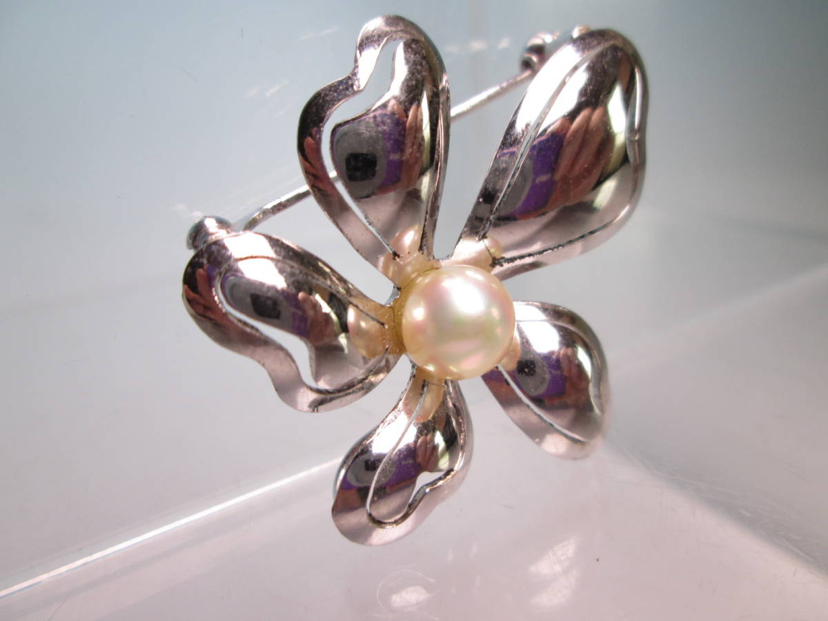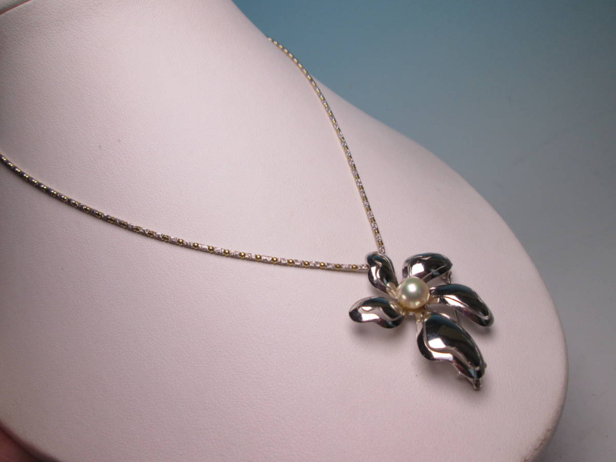 ☆SILVER 本真珠珠 7mm 飾り花のデザインブローチ兼ペンダント 5,36g