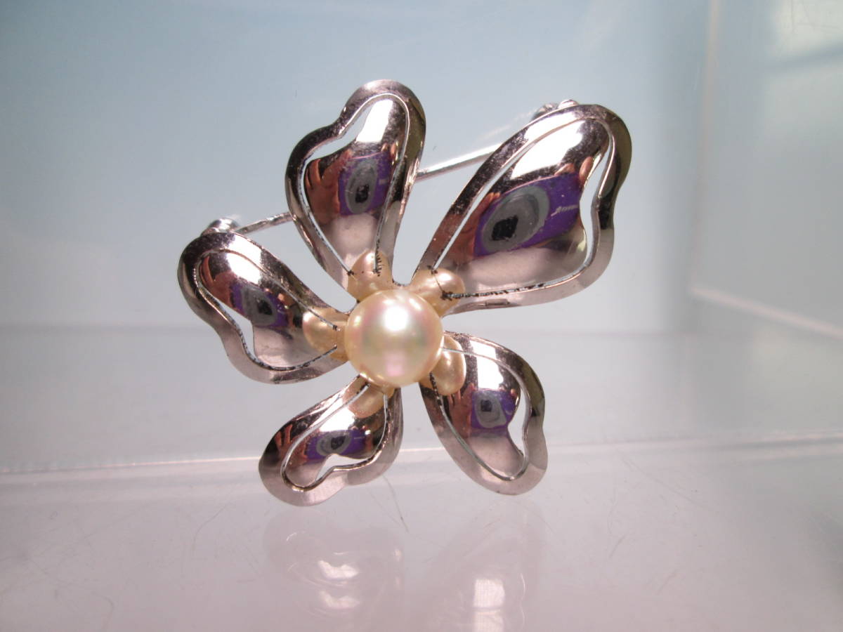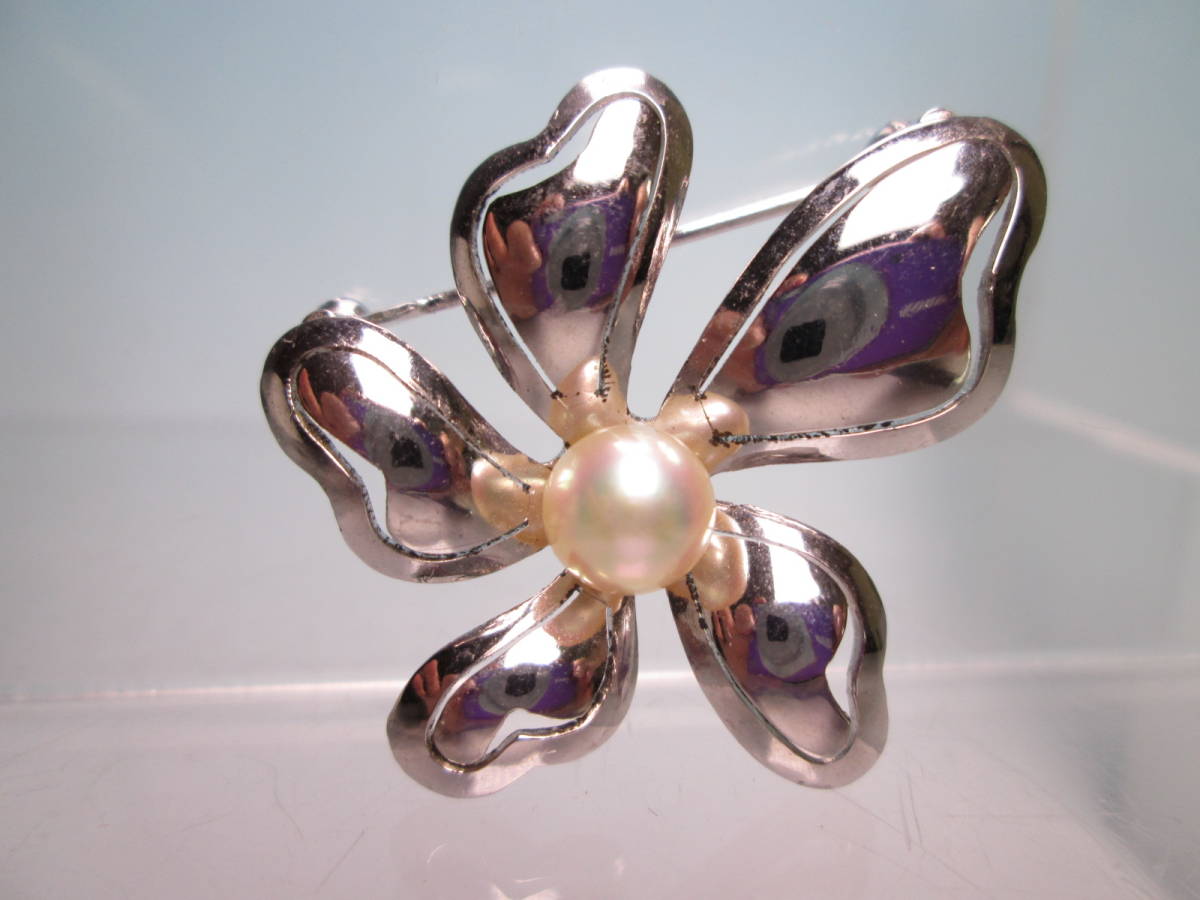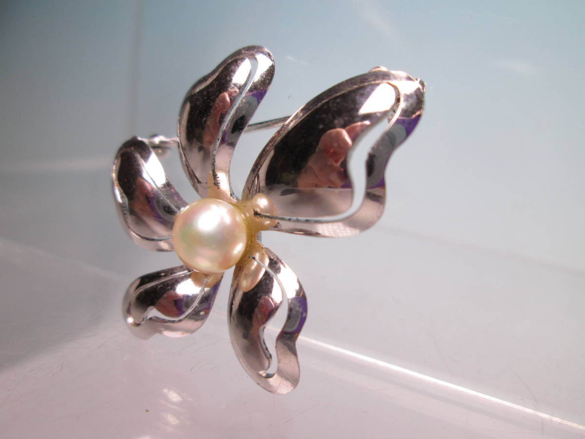 ☆SILVER 本真珠珠 7mm 飾り花のデザインブローチ兼ペンダント 5,36g
