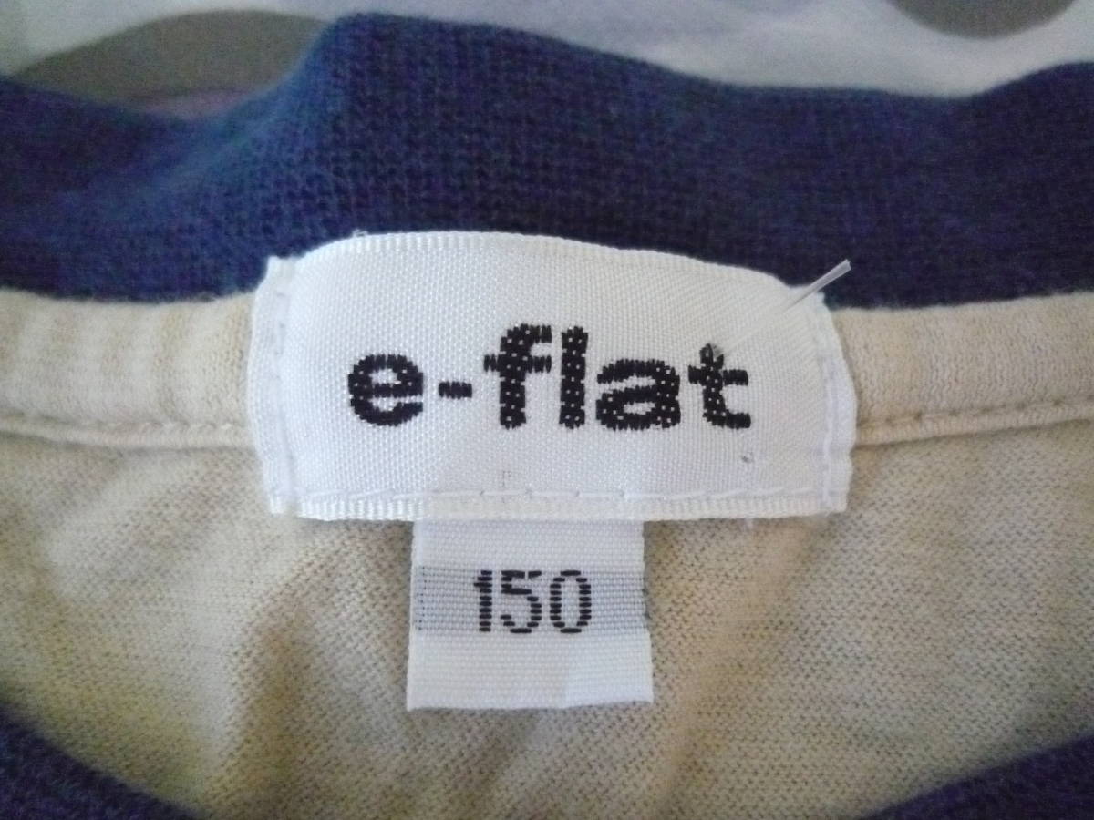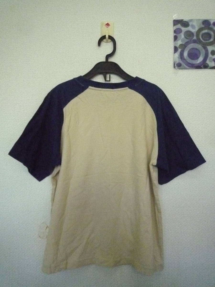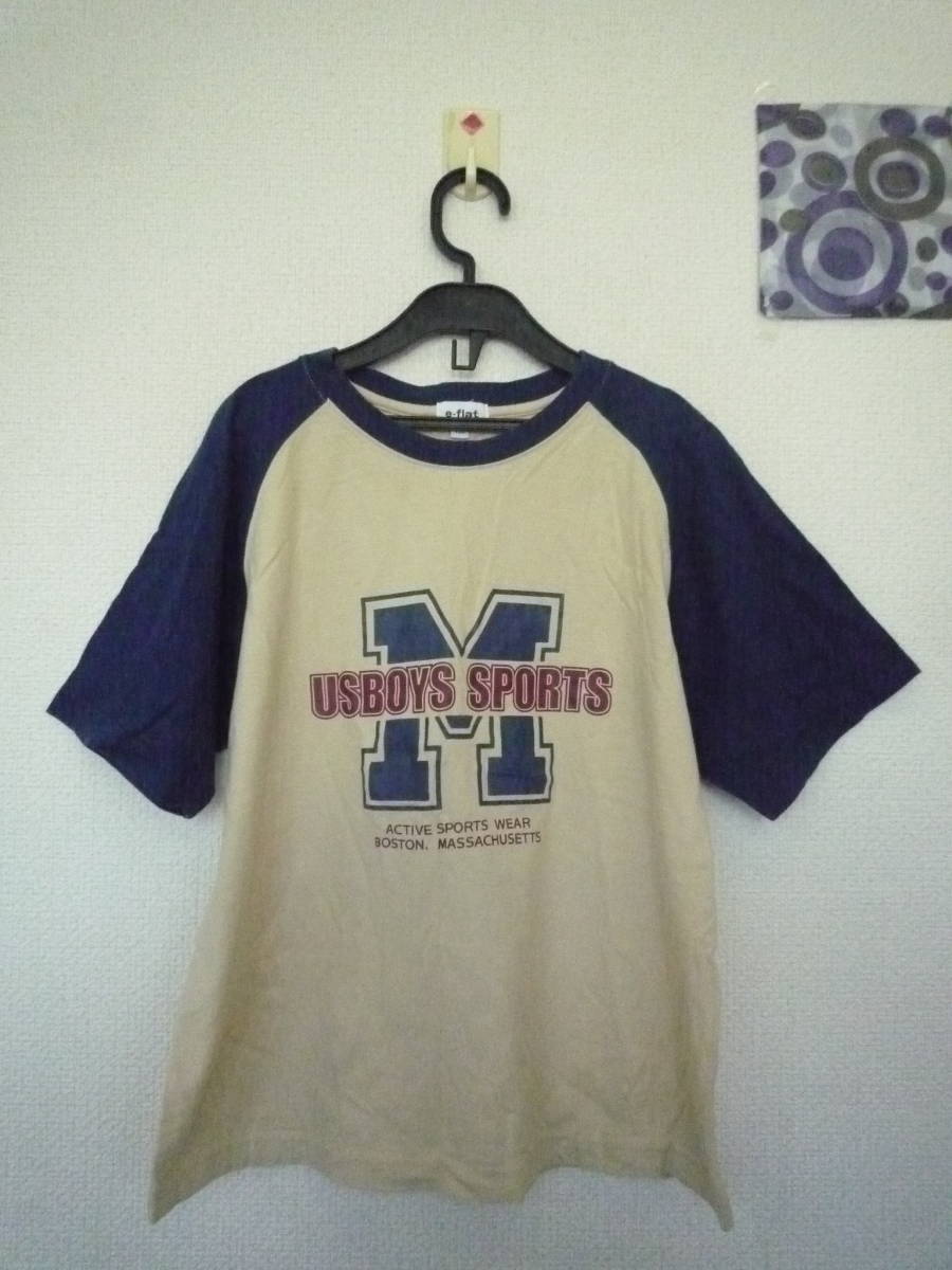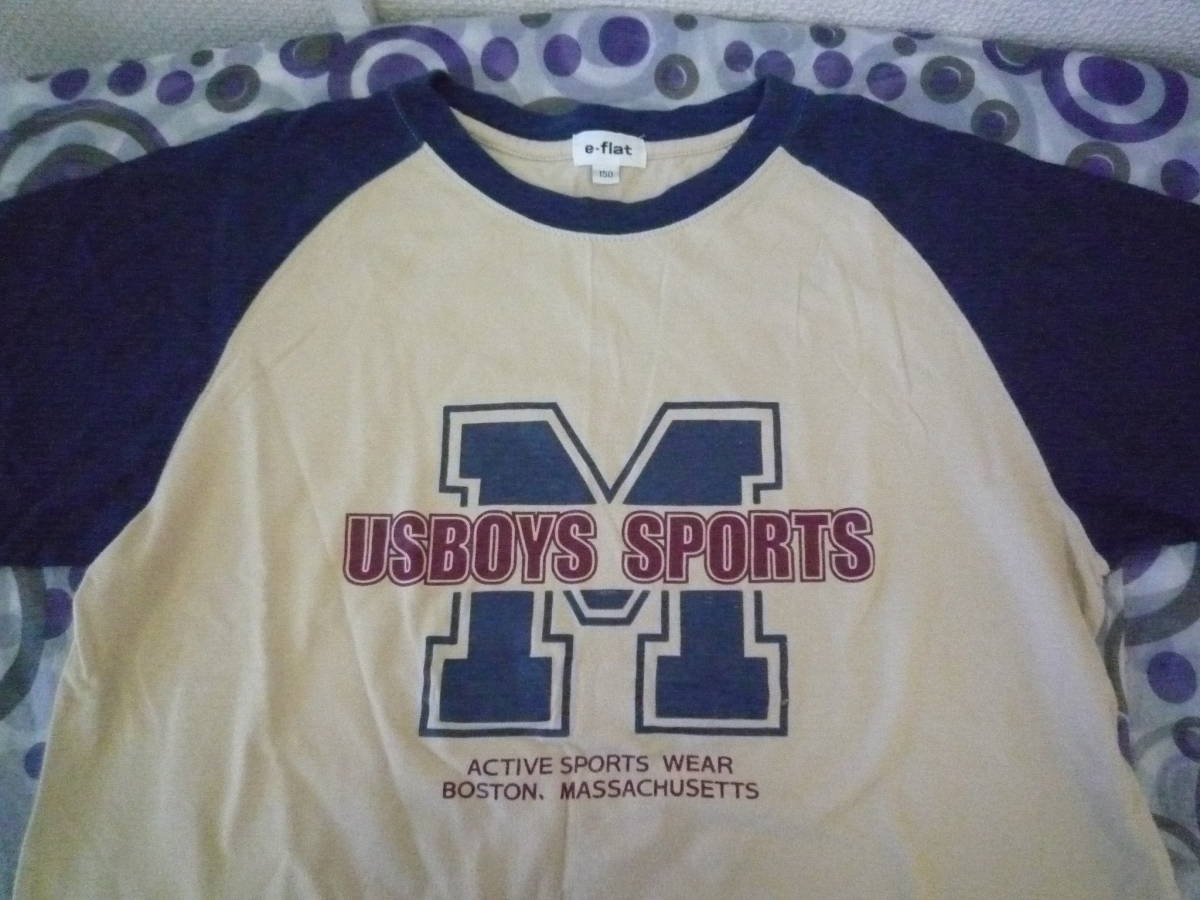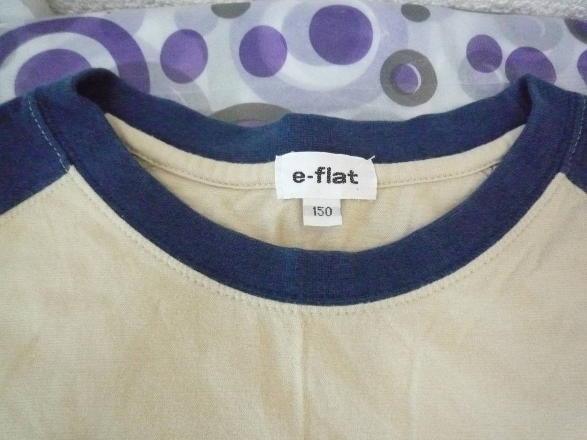 ★e-flat 半袖Tシャツ ラグラン ロゴプリント ベージュ×ブル-(150)