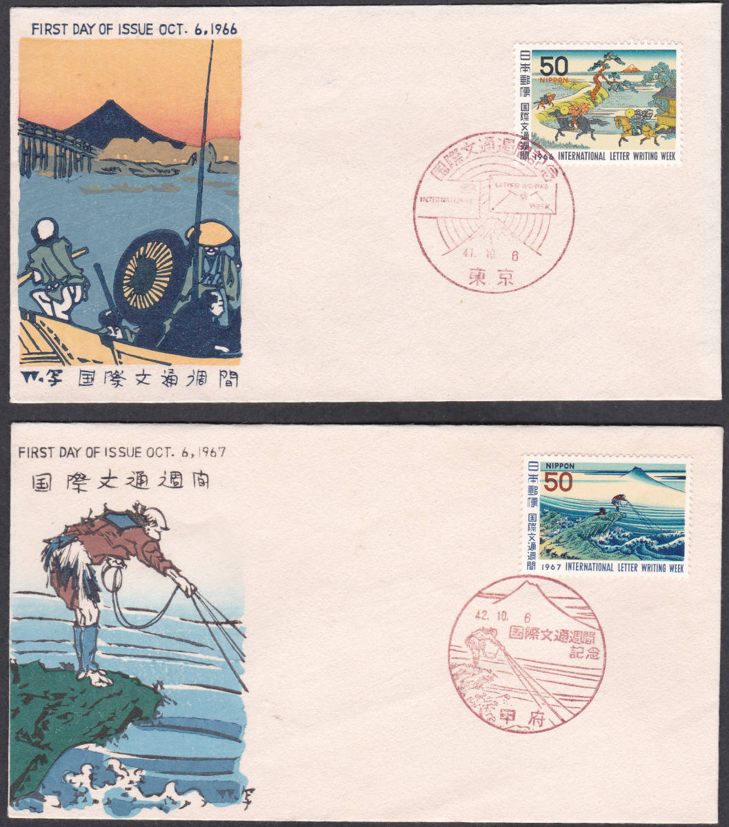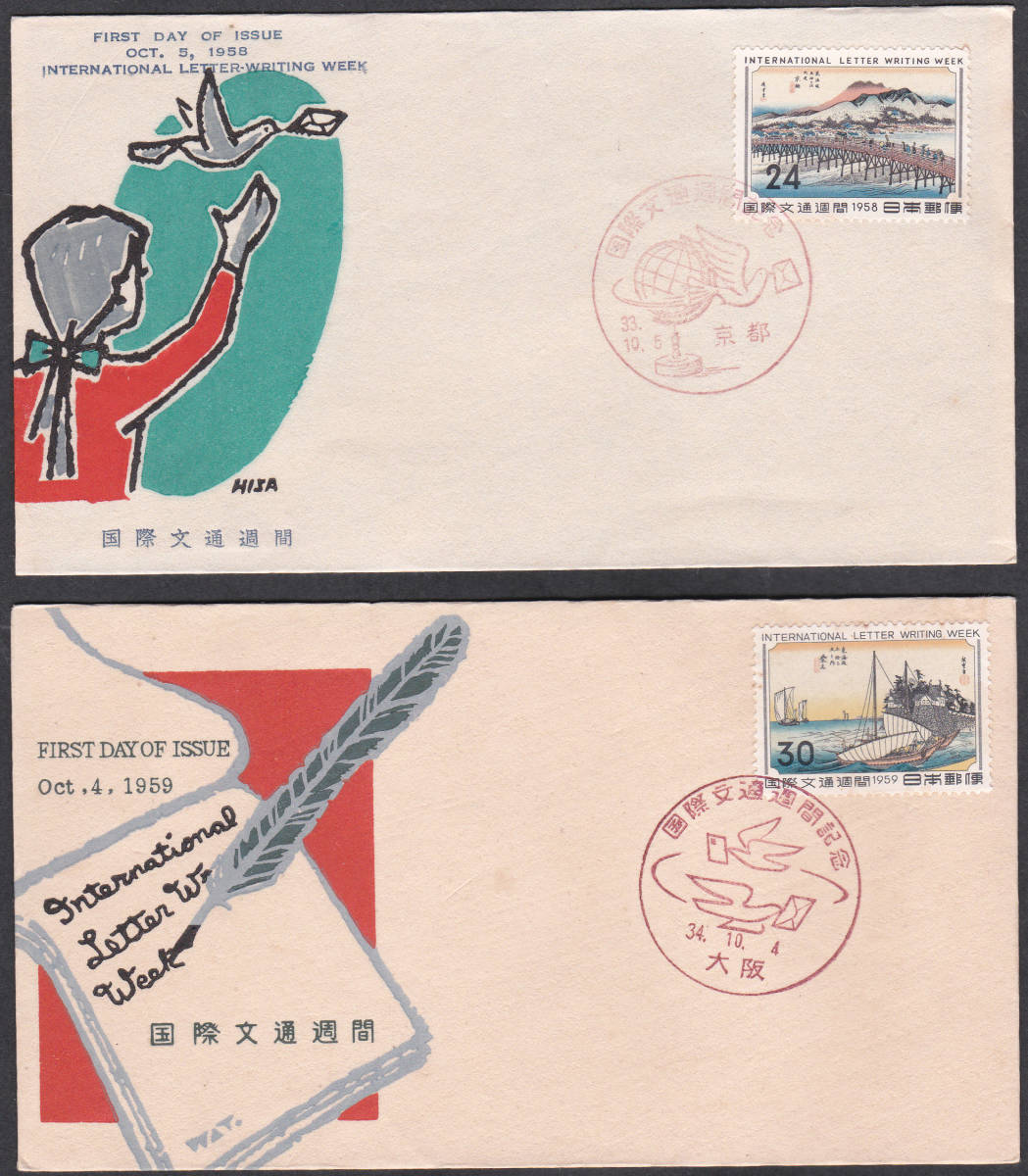 FDC 1958-69年 国際文通週間  12通  中村浪静堂