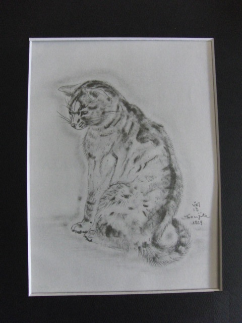 藤田嗣治、Leonard Fujita、『AZUBAH』、希少な大判額装用画集より、状態良好、新品額装付、猫、コロタイプ、zero