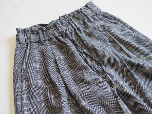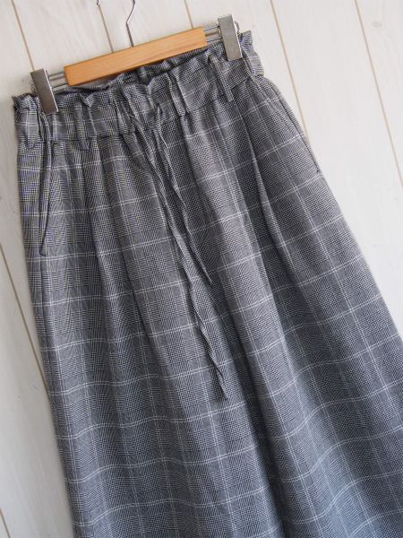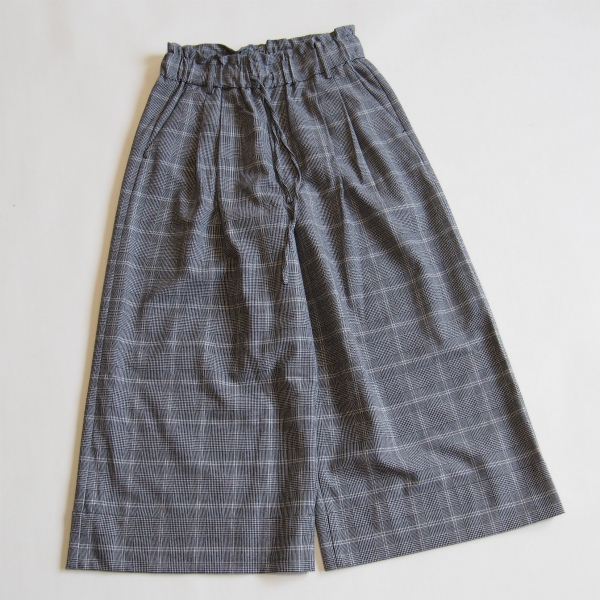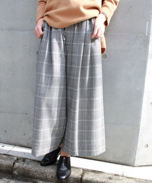 落ち感のきれいな素材を使用したグレンチェック柄のワイドパンツです。 シルエットがきれいに出るのでカジュアルすぎず、コーディネートしやすい一本です。 程よいクロップド丈なのでオフィスカジュアルにもお使いいただけます。