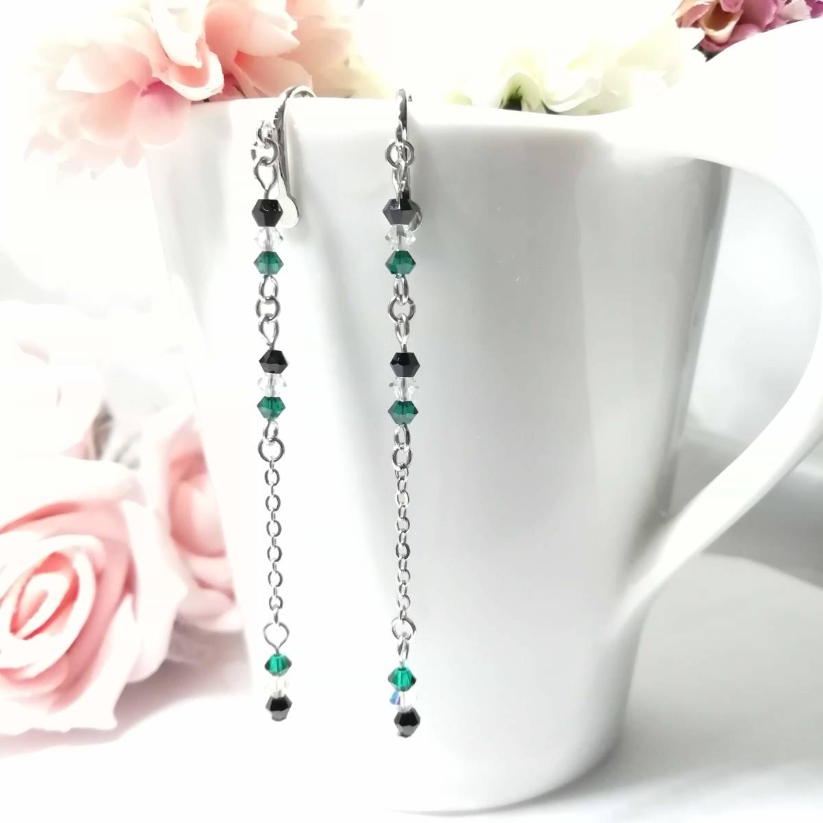 | ★商品内容★ ★緑と黒のハンドメイドイヤリング★シック・スワロフスキー・上品・ゴージャス・シルバー・エメラルド・グリーン・クリスタル・ロング・黒 小粒のスワロフスキーとシルバーパーツを組み合わせた シックでゴージャスな印象のロングイヤリングです*・.**.☆・。**.・。*・**。 細いチェーンに吊る下げたビーズが キラキラと襟もとで綺麗に煌きます*・.**.☆。**・。*・**。 普段使いはもちろん、お出掛けにも お洒落のワンポイントなどにも最適です・。**.☆・。*・**。・. 【素材】 スワロフスキー5328エメラルド(オーストリア製)3mm スワロフスキー5328クリスタル(オーストリア製)3mm カットガラスビーズジェット3mm 小粒チェーンシルバー カンより垂れ下がる長さは、約6.3㎝です。 Eー563 ★商品状態★ ・画像と実物の色味が多少異なる場合があります。 ・緩衝材(プチプチ等)を使用し、防水梱包でお届け致します。 ★注意事項★ ***~ご購入前に必ずお読み下さい~*** ***商品について*** *一点一点心を込めて作っておりますが、手作りなため多少の歪み等あるかもしれません。 手作りの味わいと、世界で一つだけの作品とお考えいただければ幸いです。 *デリケートな商品ですので、強く引っ張ったりすると破損する事もあります。 お取り扱いにはご注意ください。 *写真も完璧な色合いの表現にはなっていない場合もあります。 *基本イヤリング金具は跳ね上げ式ネジ付きを使って作成しています。 ご希望によりピアスへの変更も承っております【フックピアスへの変更無料/キャッチピアスへ変更(別途追加料金120円が必要です)】 ~ご注文の際にメッセージ欄よりお申し付けください~ 尚、金具変更のご希望が無い場合は、掲載された写真の金具にてお送り致します。 *金属アレルギーや化学物質アレルギーなどへの対応はしておりませんので、ご心配な方はご遠慮下さいますようお願い致します。 *永くご愛用頂くために、ご使用後は柔らかい布等で軽く拭いてください。 ***ご質問について*** *ご購入前にお願い致します。 日中は仕事をしておりますので、ご返事が直ぐに出来ない場合がございます。 出来る限り早い対応を心がけますが、ご了承ください。 また、発送までには、お振込み確認後、翌日の発送を心がけておりますが、仕事の都合により2~3日程かかる場合がございます。(その際にはナビにてご連絡いたします) お急ぎの場合は、極力対応いたしますが、場合によっては対応致しかねる事もあります。ご了承下さいませ。 落札後4日以内にお手続き、ご連絡が無い場合は落札者都合で削除致します。 発送日指定・ご入金の予定が1週間以上先をお考えの方は、入札の前に質問よりご連絡くださいませ。 予めご了承の上、ノークレーム・ノーリターンでお願い致します。 | |||