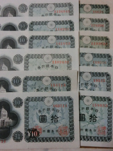 日本銀行券A号10円 議事堂10円の12印刷工場で極美品~美品です。