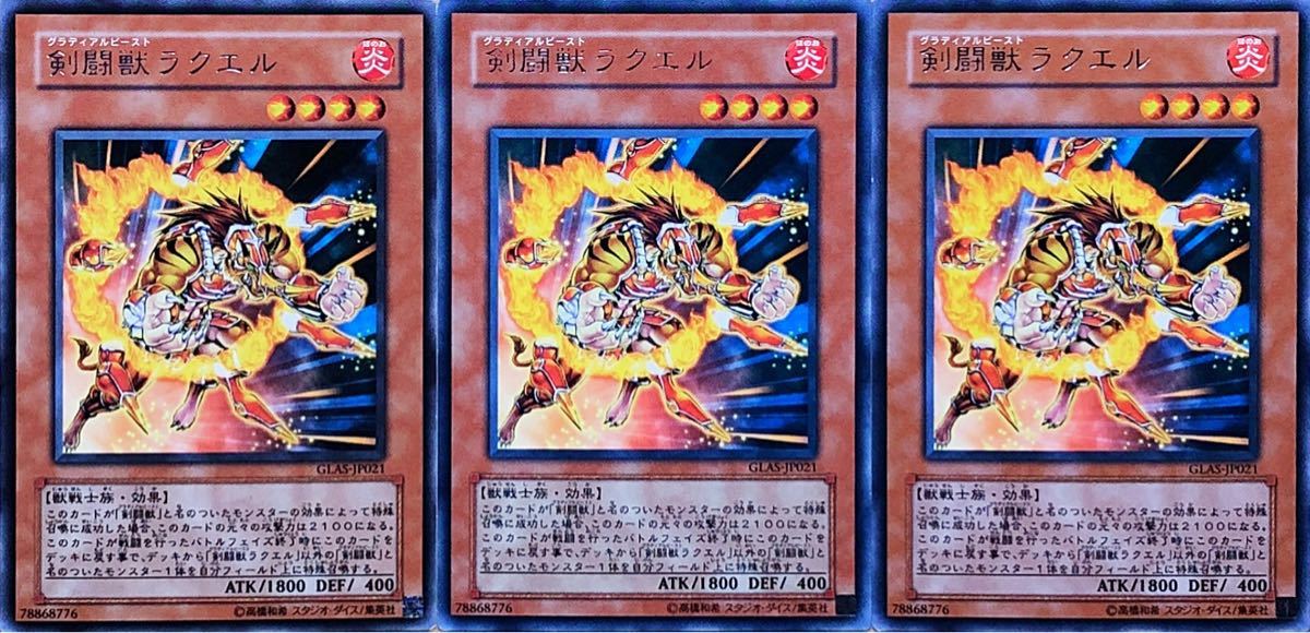 ☆遊戯王 剣闘獣ラクエル(レア) 3枚セット GLAS-JP021 GLADIATOR'S ASSAULT グラディエイターズ・アサルト 即決☆