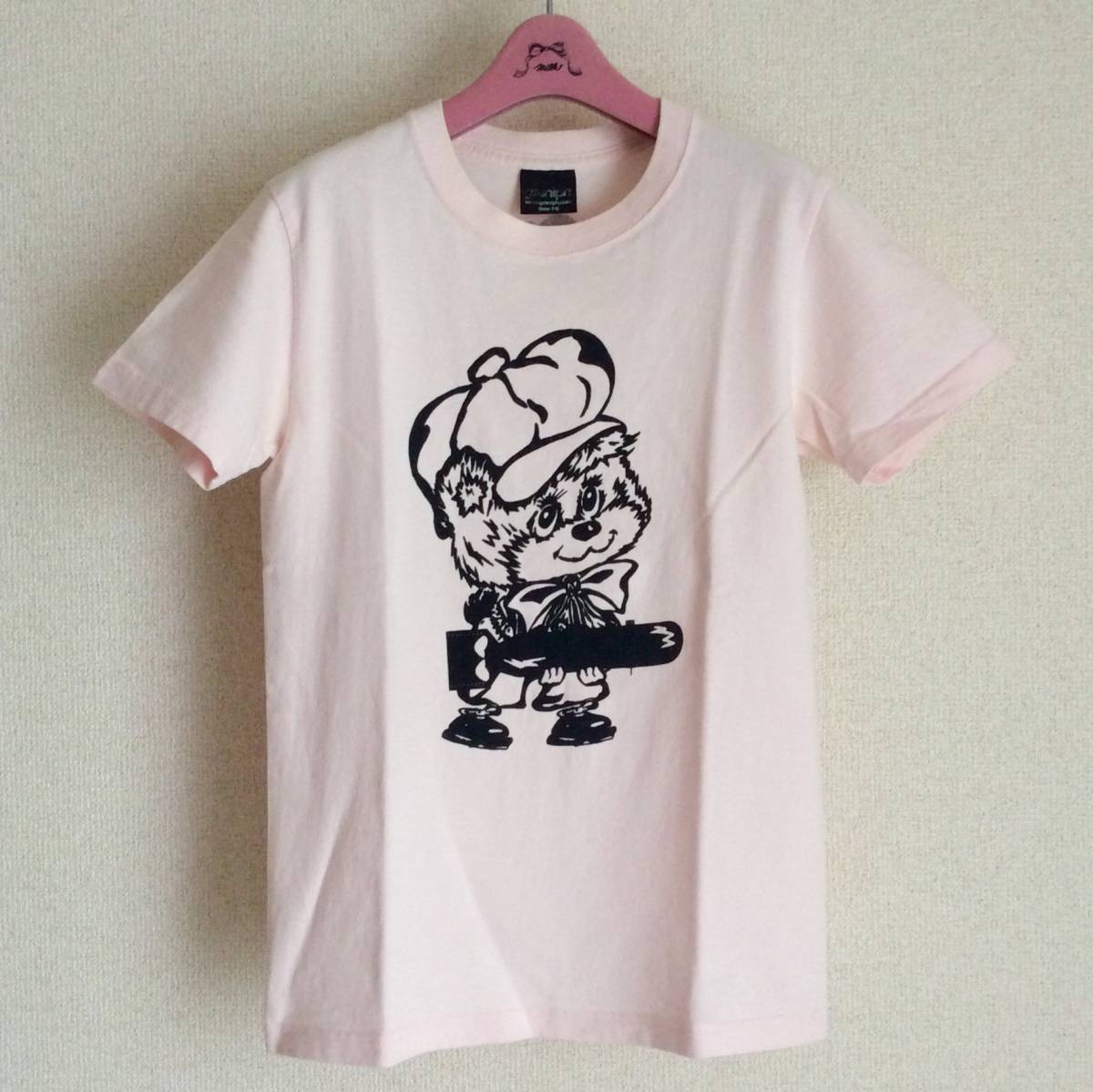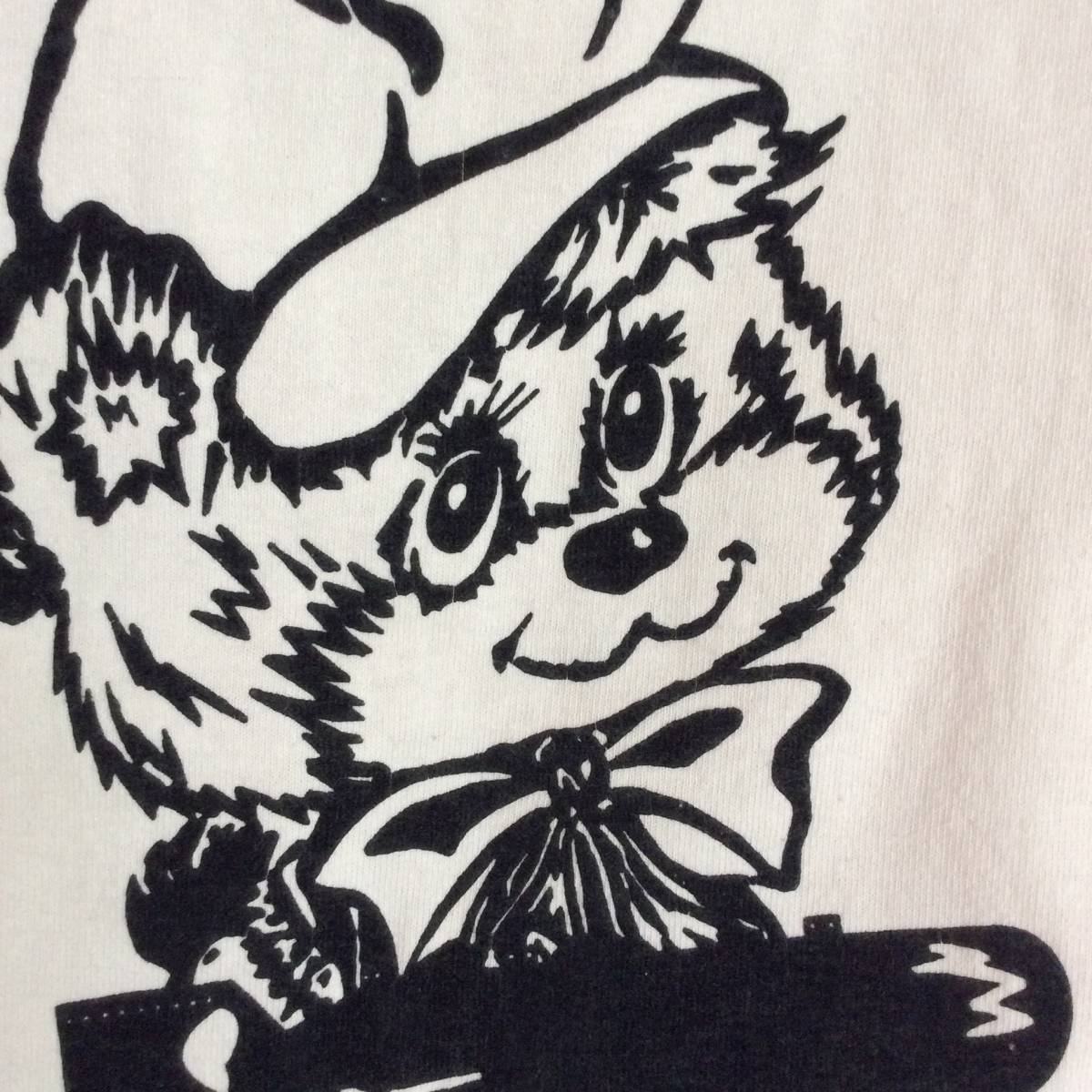 レトロな雰囲気のクマのフロッキープリントが可愛いTシャツです。