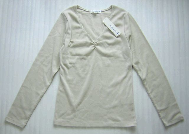 タグ付き・未使用◆MK+ミッショルクラン+/KLEIN PLUS+/レース付きVネックカットソー/ベージュ系40/11号/長期保管品
