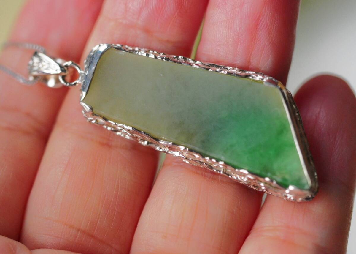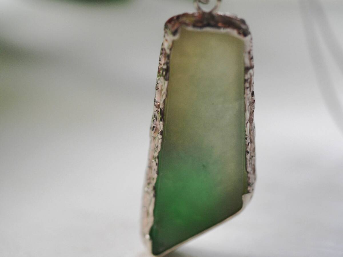 希少な上質翡翠原石を使用して、涼しげで爽やかな色合いが華やかな放つ逸品です。