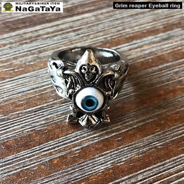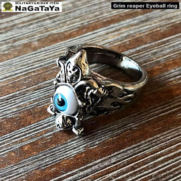 ★ バイカージュエリー Biker Jewelry グリム・リーパー(死神)アイボールリング(目の玉) ブルー シルバーニッケルリング 指輪 ★