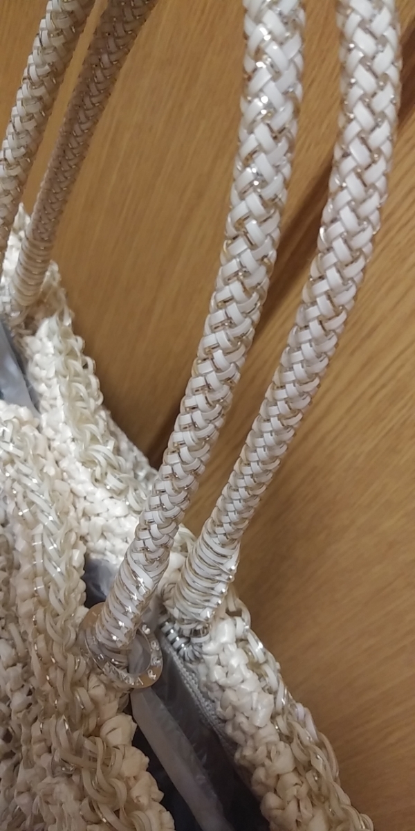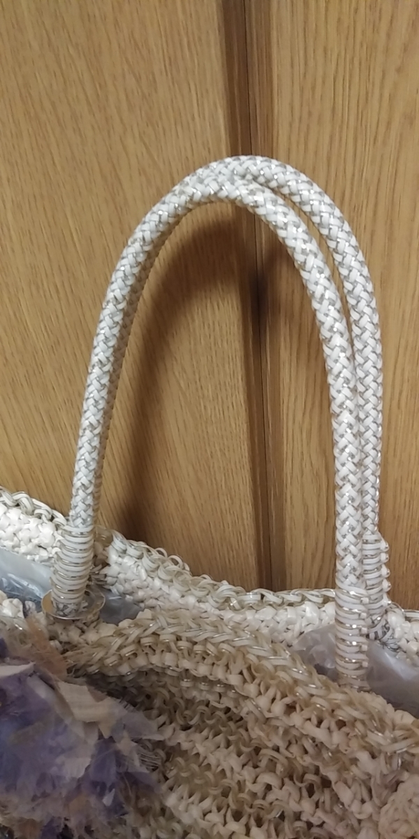 ワイヤーコードとラフィア素材が編み込まれた涼しげで軽やかなデザイン。