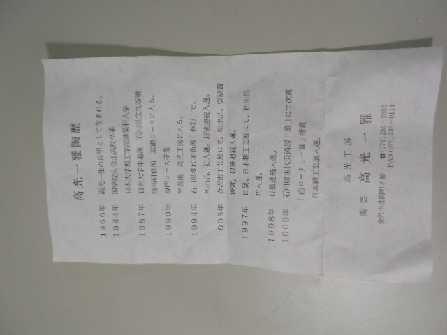 ・高光一雅の器です。