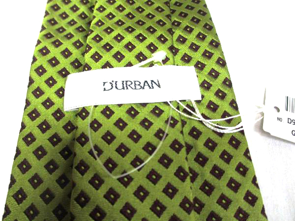 D'URBAN/ダーバンのネクタイ、タグ付きです。 光沢のある鮮やかなグリーンの地にブラウンの細かなスクエア模様の、美しく洒脱でありながら品のあるデザインのネクタイです。コーディネートのアクセントとして、全体を引き立て、華やかで目を引く色合いとデザインです。 サイズ(約/cm):全長142、大剣幅9 (サイズは実寸のため若干の誤差がある可能性がございます。) | |