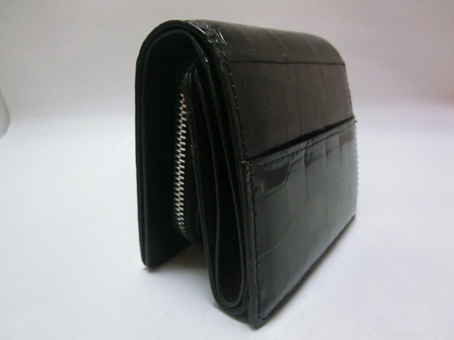 クロコダイル革にグレージング加工を施した、「皮革の宝石」と呼ばれる革を使用した3つ折り財布です。