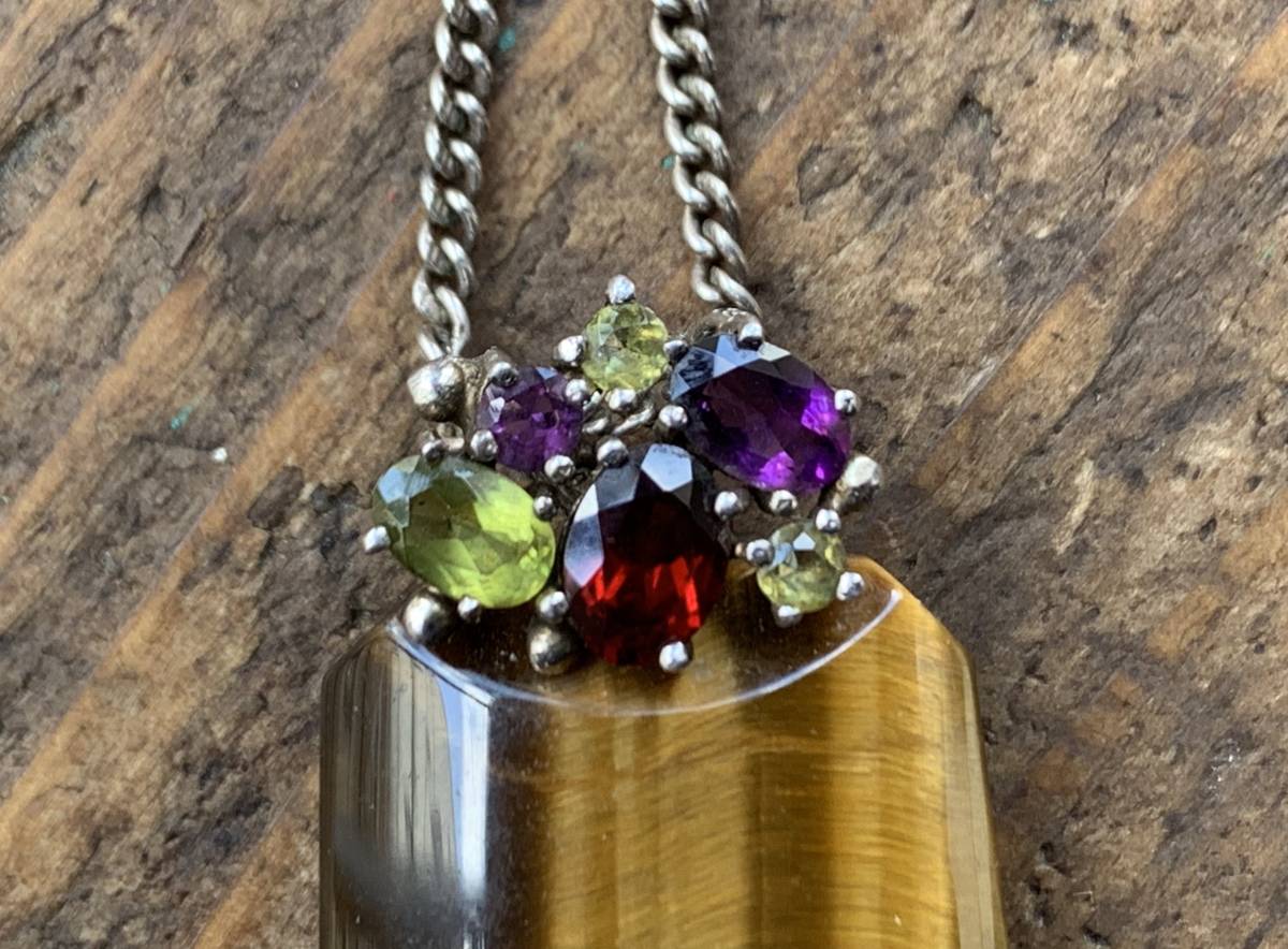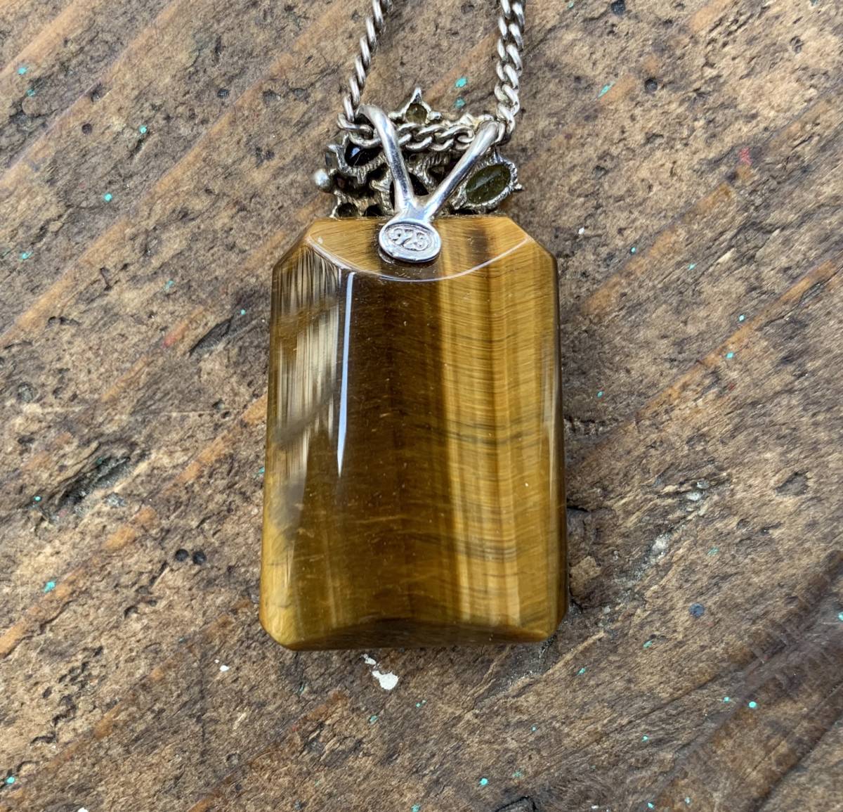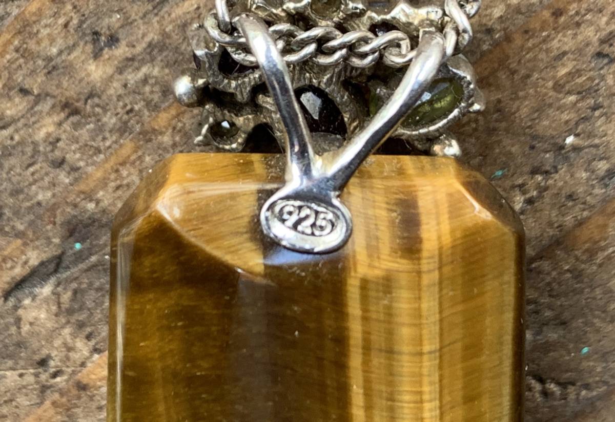 ★タイガーアイ★ペンダント★ネックレス★アクセサリー★シルバー925★ラインストーン★